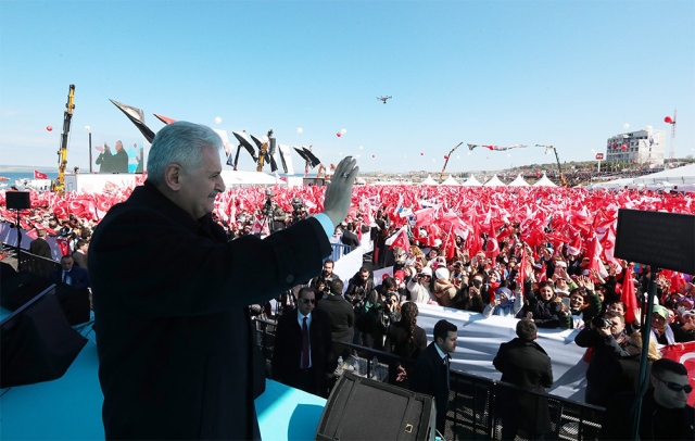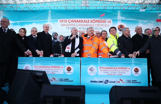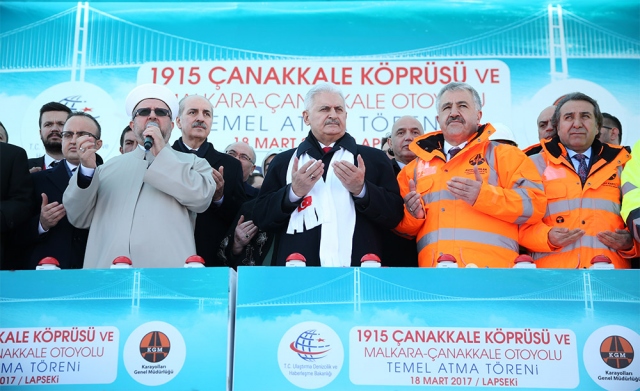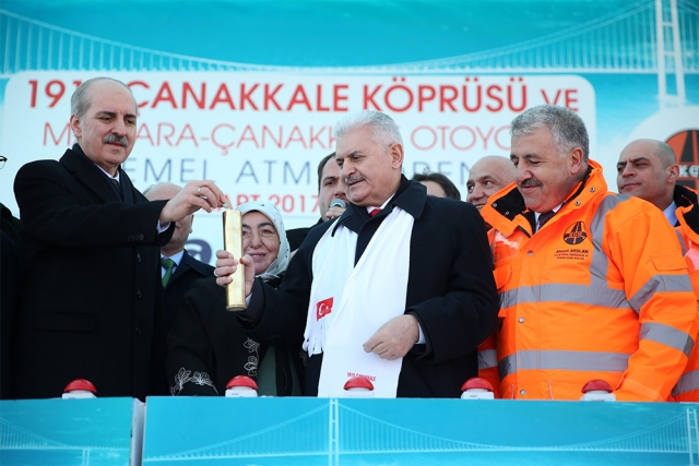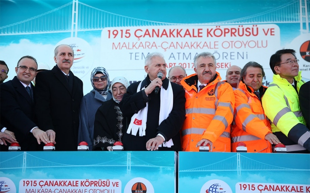 Başbakan Binali Yıldırım ve eşi Semiha Yıldırım, Başbakan Yardımcısı Numan Kurtulmuş, Ulaştırma, Denizcilik ve Haberleşme Bakanı Ahmet Arslan ve beraberindekiler, 1915 Çanakkale Köprüsü ve Malkara-Çanakkale Otoyolu temel atma törenine katıldı. Çanakkale Köprüsü'nün temeli atıldı.