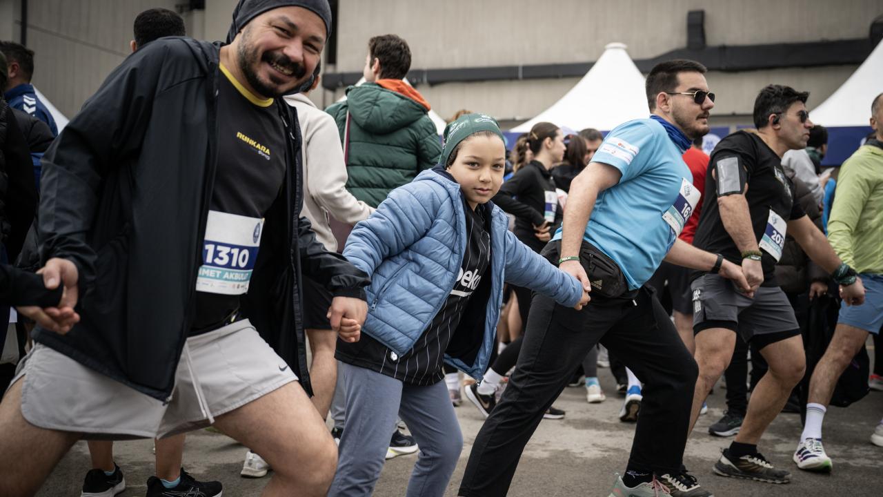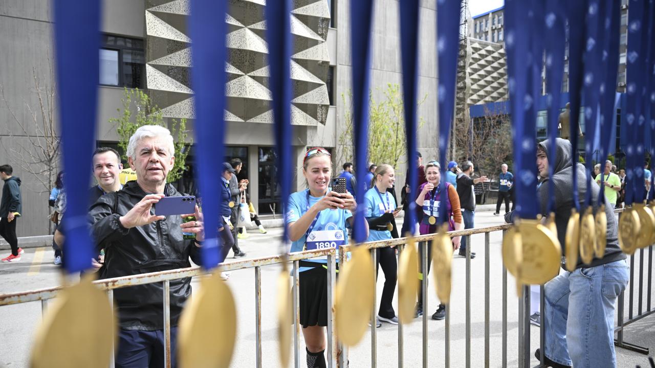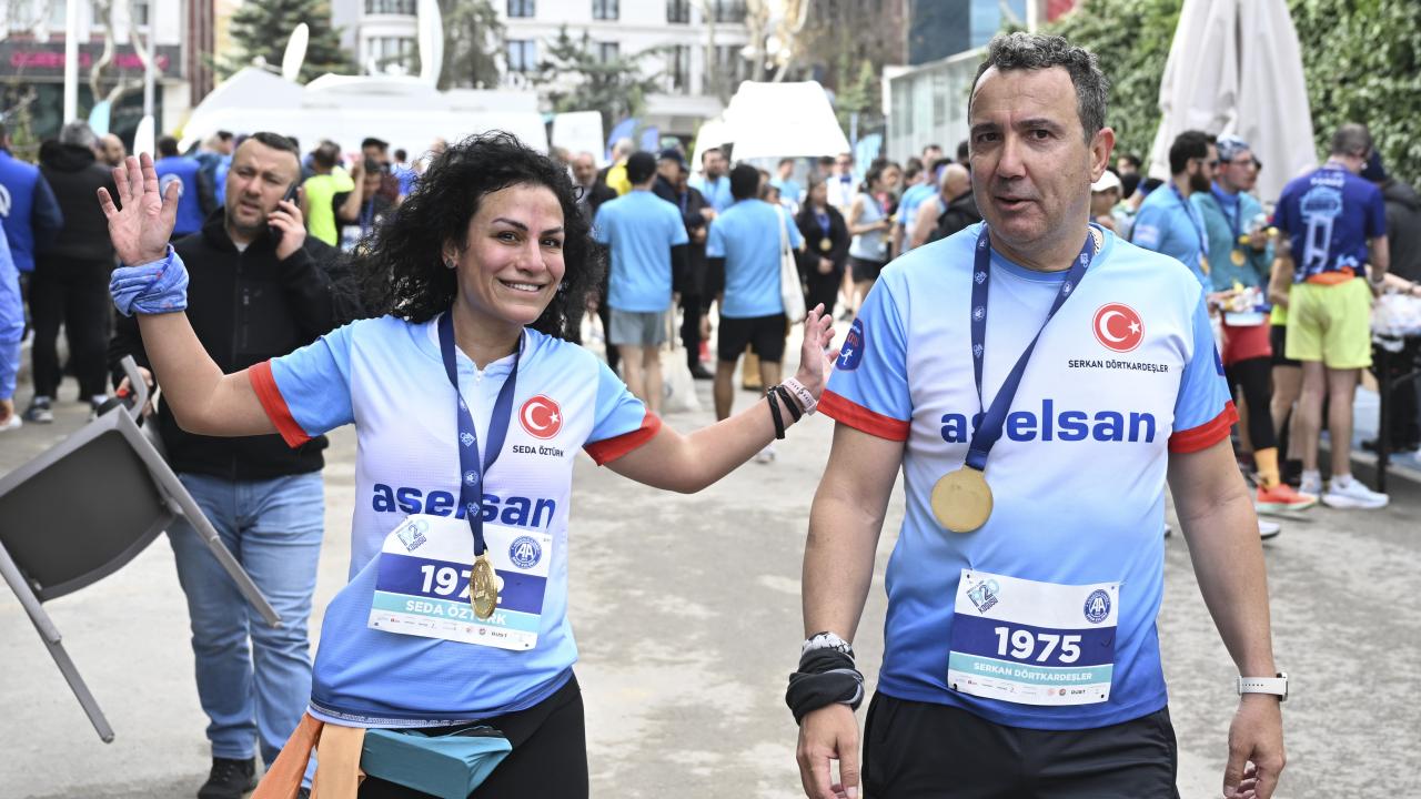 AA Yönetim Kurulu Başkanı, Genel Müdürü ve AA Spor Kulübü Başkanı Serdar Karagöz, ilk 3`e giren sporculara finişte madalyalarını taktı.