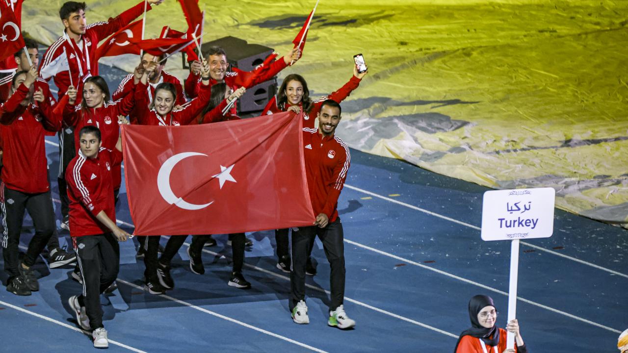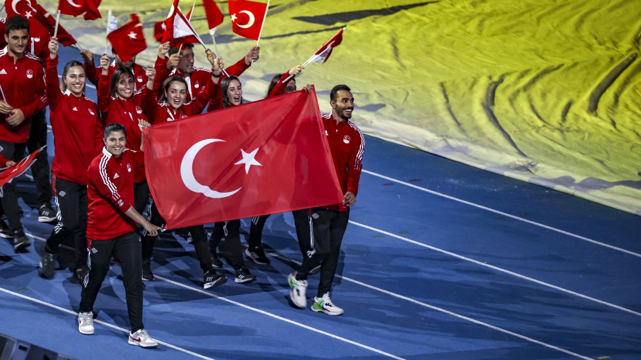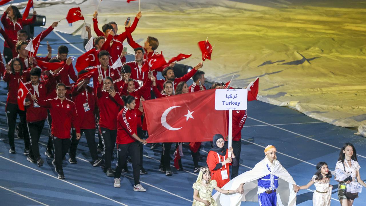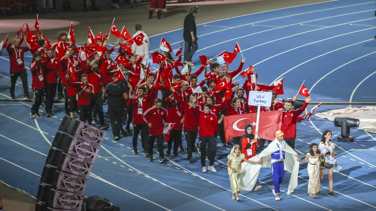 Açılışın ardından geçit töreni gerçekleştirildi. Türkiye`nin 8`inci sırada çıktığı geçit töreninde Türk Bayrağı`nı milli boksör Busenaz Sürmeneli ile milli cimnastikçi Ferhat Arıcan taşıdı.