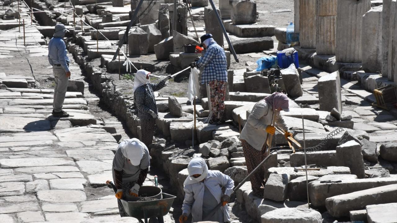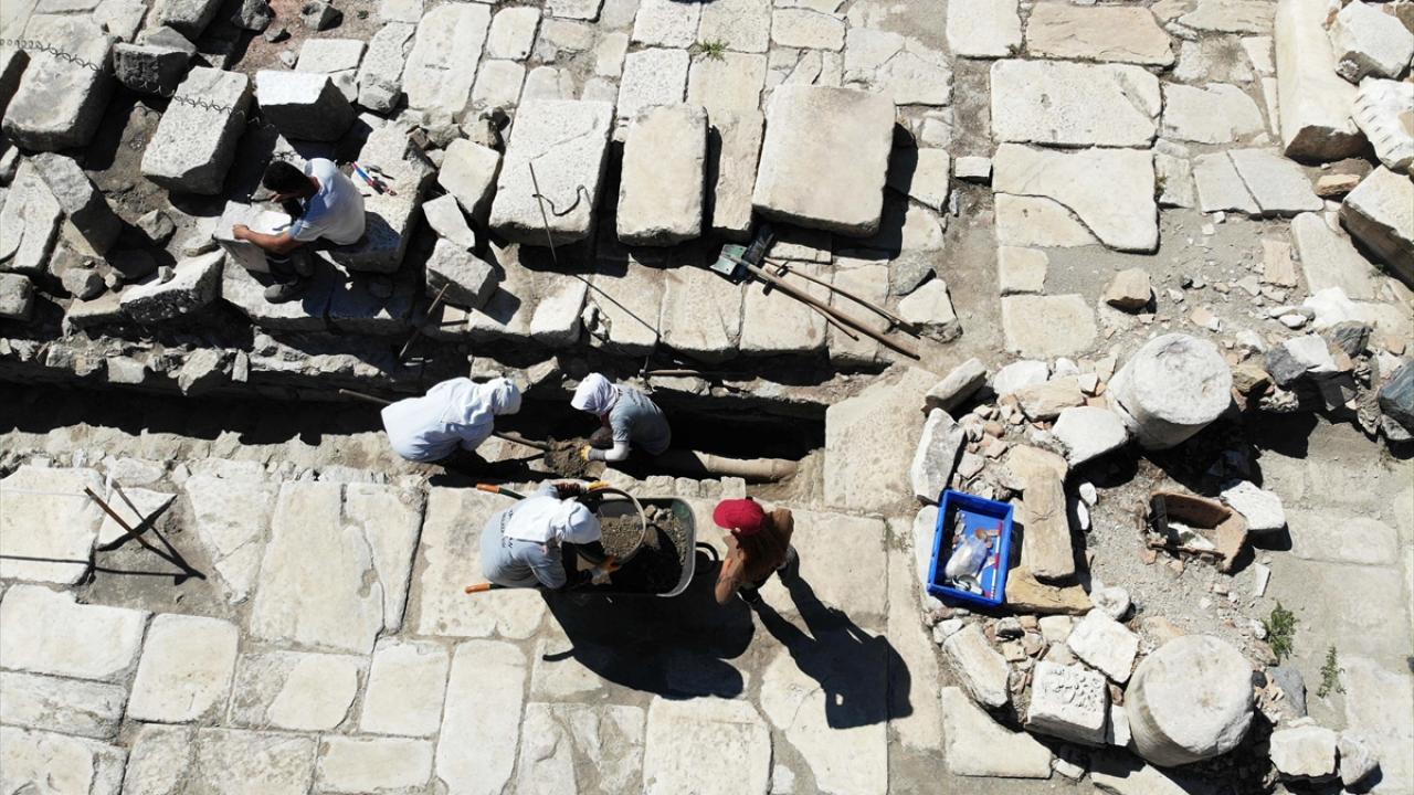 Söğüt, "10 metre genişliğinde. Helenistik ve Bizans döneminde kullanılan ve Roma döneminde aktif olarak hizmet veren bir caddeyi açığa çıkarmıştık. Şimdi bu caddenin ortasında devam eden yaklaşık 70 santimetre genişliğinde bir metre derinliğindeki kanalizasyon sistemini gün yüzüne çıkardık. Buranın konservasyon ve restorasyon çalışmalarını tamamlıyoruz." dedi.