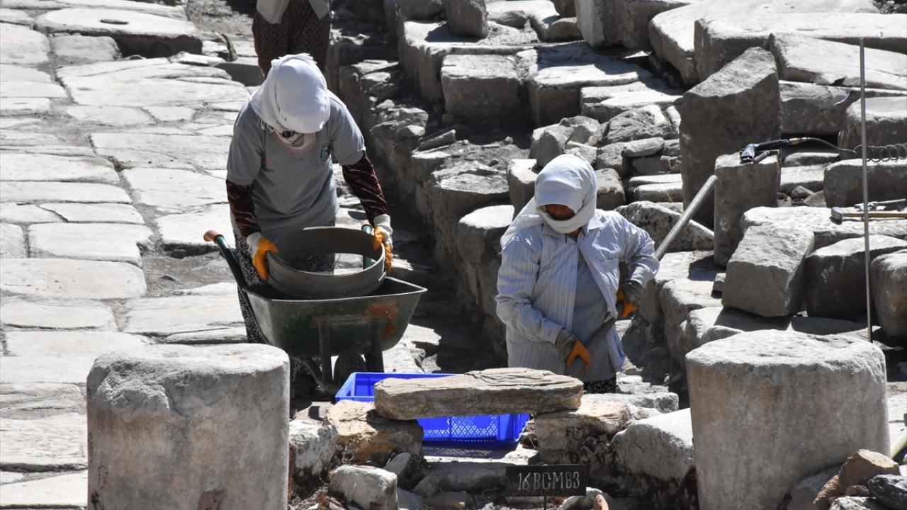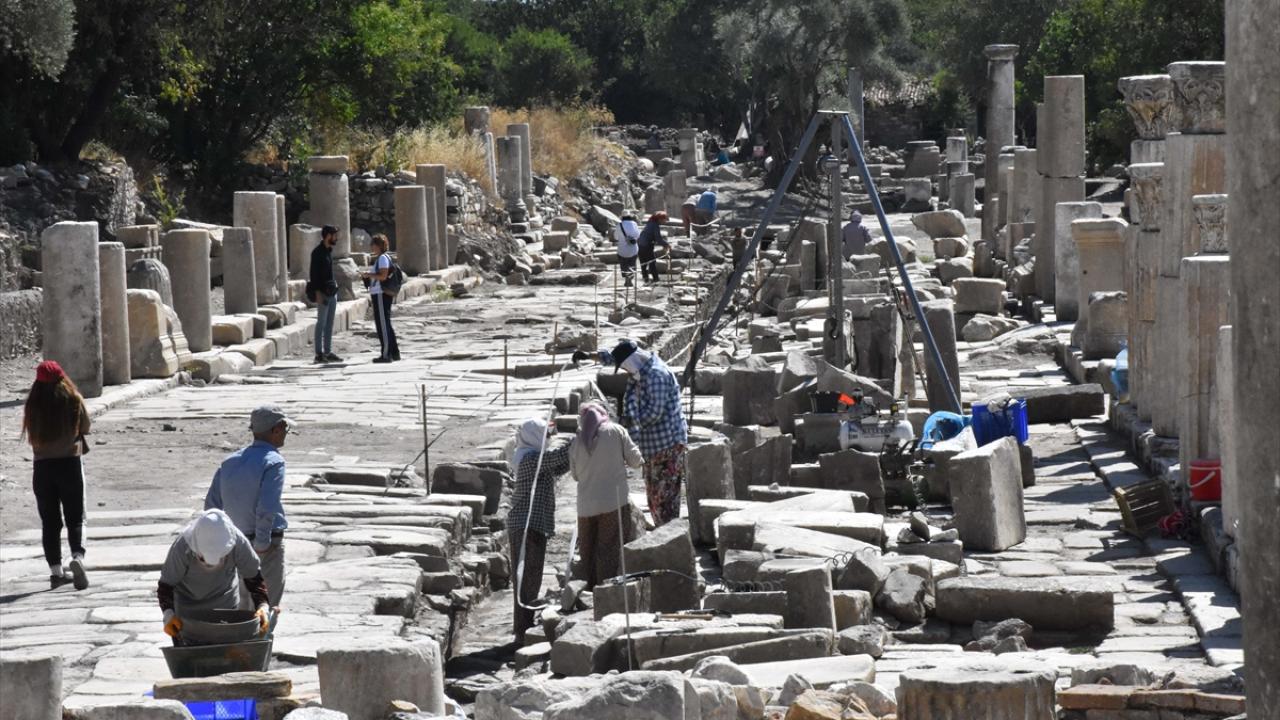 Antik kentin Batı Caddesi`nde hem kazı hem konservasyon hem de restorasyon çalışmalarının sürdüğünü aktaran Söğüt, bu alanda Klasik, Helenistik, Roma ve Bizans dönemine ait yerleşimlerin olduğunu kaydetti.
