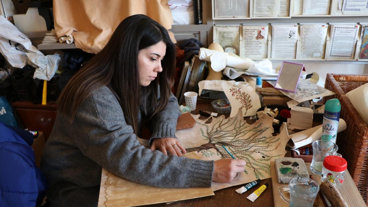 Meltem Demirel ve 2018 yılında "çıraklığa kabul ettiği" eşi Sinan Demirel, evlerinin çatı katına parşömen atölyesi kurdu.