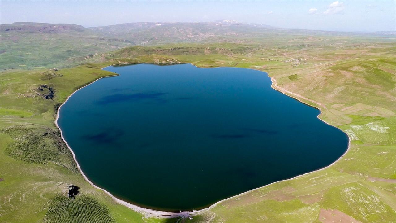 Kent merkezine 13 kilometre uzaklıkta yer alan ve soğuk hava nedeniyle kış aylarında yüzeyi tamamen buzla kaplanan göl, yaz aylarında da farklı güzelliğe bürünüyor.