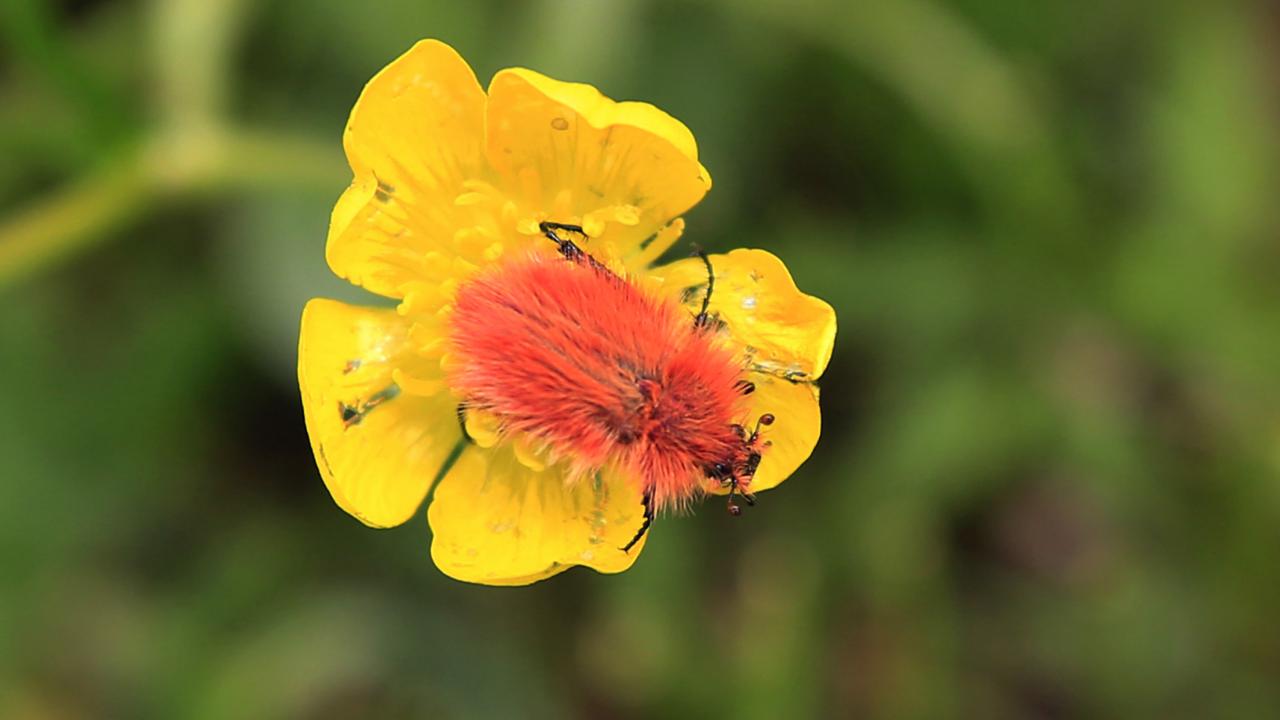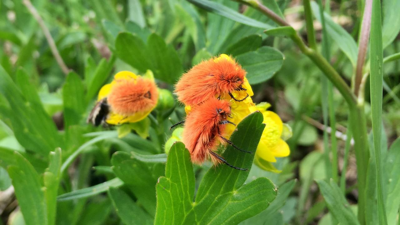 Turuncu ve kırmızının farklı tonlarında renklere sahip tüylerle kaplı böcekler Çam`ın ilgisini çekti.