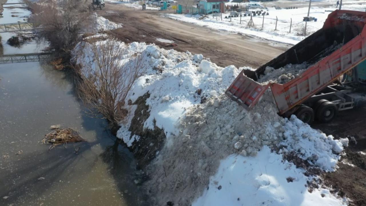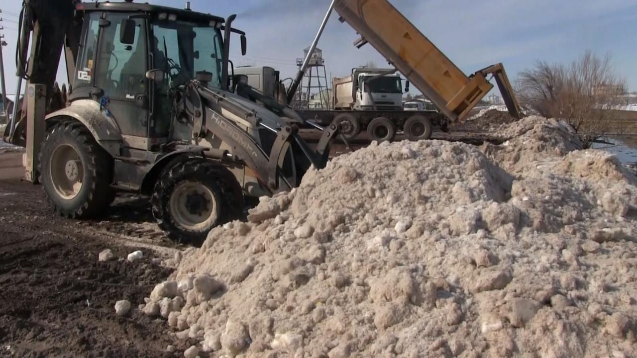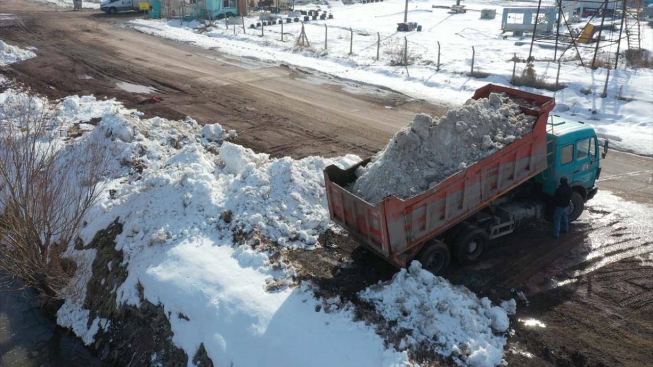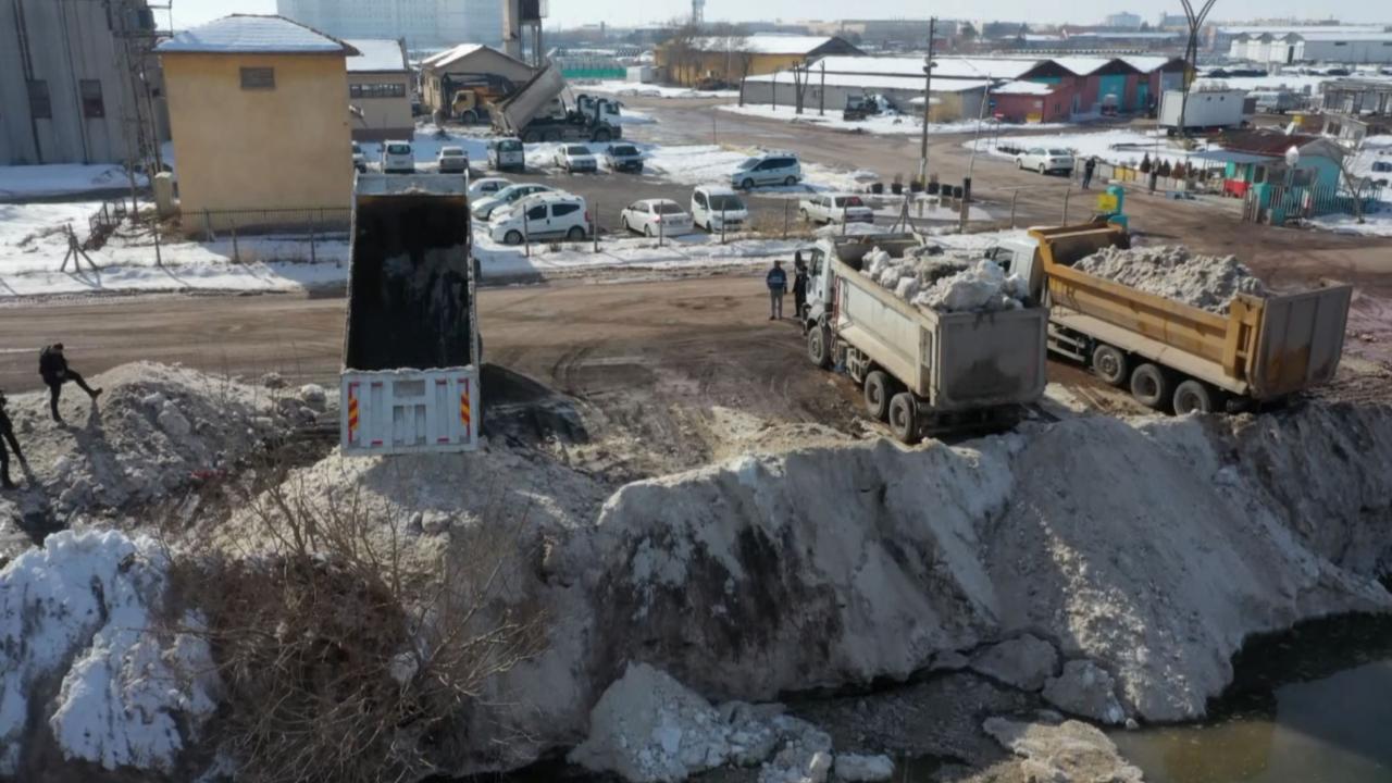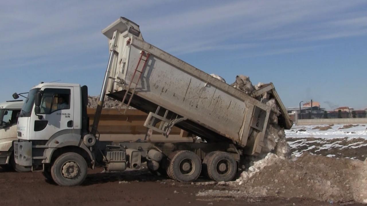 Aksaray Belediyesi ekiplerince kent merkezinden toplanan 2 bin 500 kamyon kar, Tuz Gölü`nü besleyen kanallara döktü.