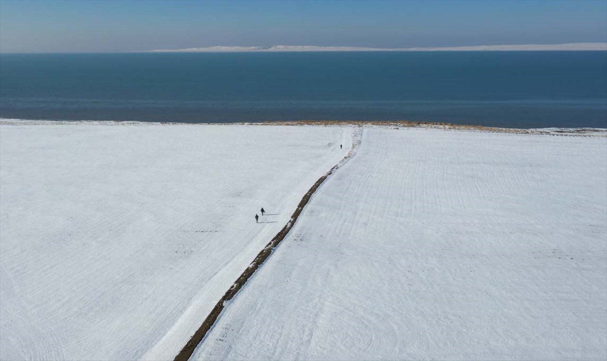 Türkiye`nin tuz ihtiyacının yüzde 60`ını karşılayan ve flamingoların kuluçkaya yattığı en önemli yerler arasında yer alan Tuz Gölü, kar manzarasıyla da görsel şölen oluşturdu.