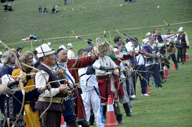 Kırgızistan'ın ev sahipliğinde düzenlenen 2. Dünya Göçebe Oyunları kapsamındaki Etno Festivali'nde, geleneksel oyunlar ve yarışmalar devam ediyor. Ülkenin kuzeyindeki Çolpon-Ata kentine 40 kilometre uzaklıktaki Tanrı Dağı Kırçın Yaylası'nda gerçekleştirilen festivalde, okçuluk yarışmaları yapıldı.