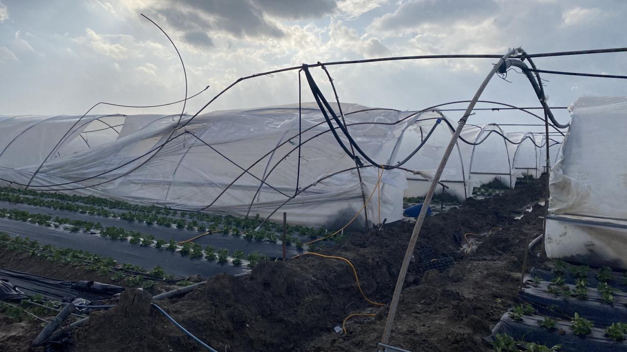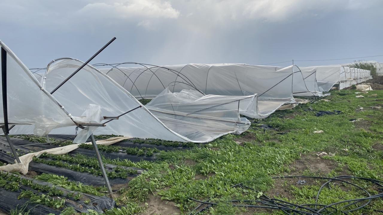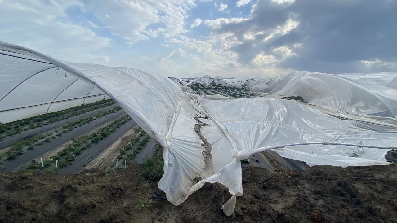 Çilek seralarının yanı sıra, şiddetli fırtına bölgede domates seralarının da plastik örtülerini uçurdu. Maddi hasarların meydana gelmesine sebep oldu.