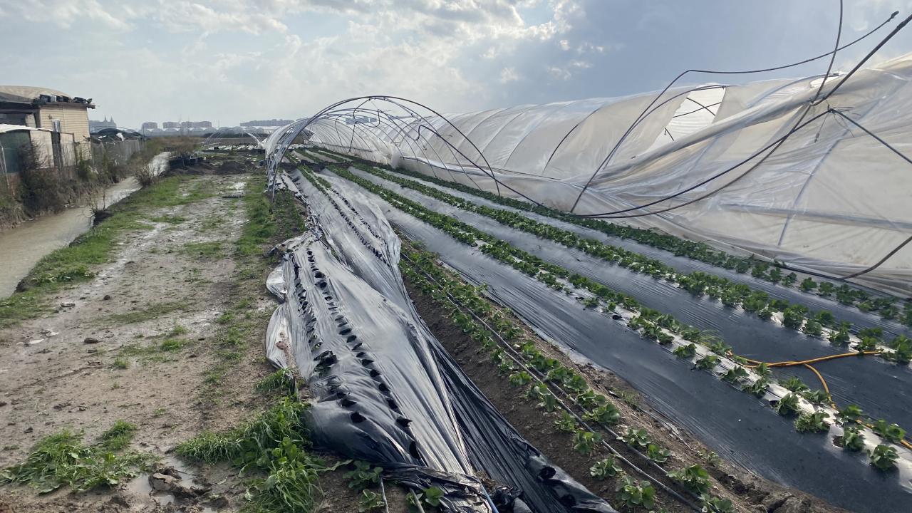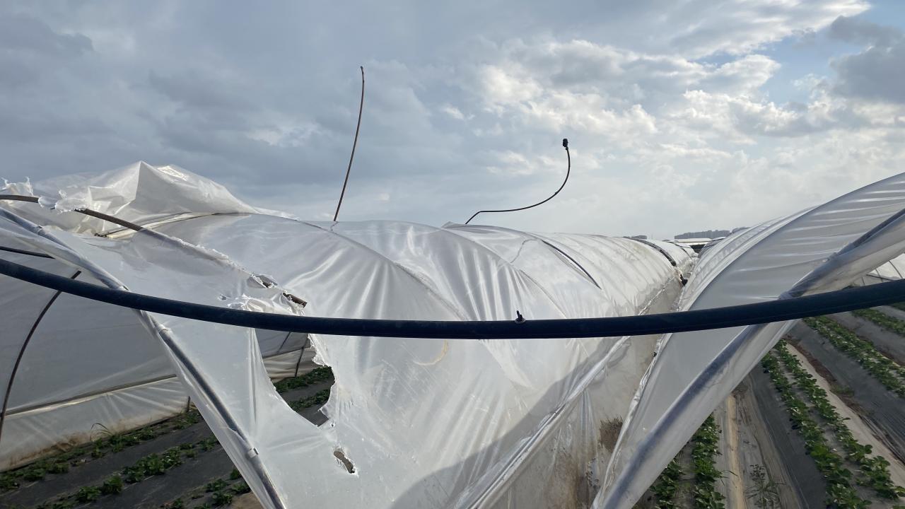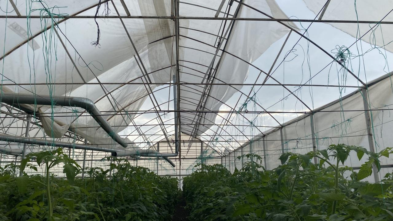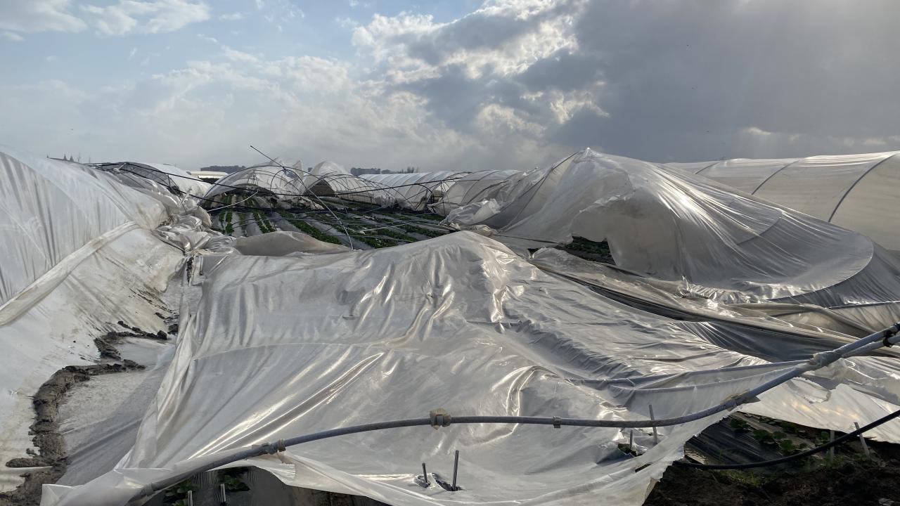 Çilek seralarının yanı sıra, şiddetli fırtına bölgede domates seralarının da plastik örtülerini uçurdu. Maddi hasarların meydana gelmesine sebep oldu.