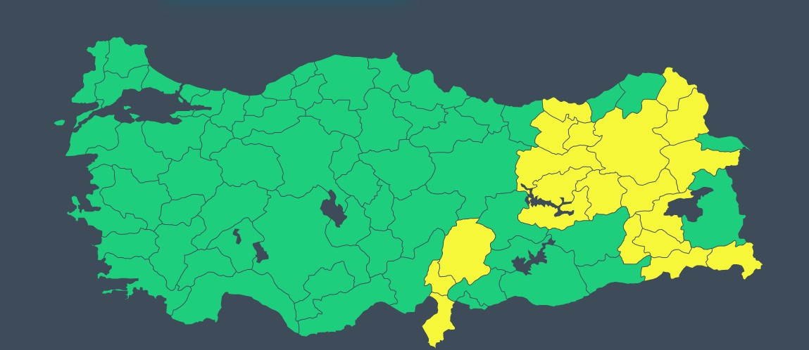 Doğu Anadolu ve Doğu Karadeniz`in yüksek kesimlerinde ise karla karışık yağmur ve kar bekleniyor. İşte sarı kodla uyarılan 20 il...