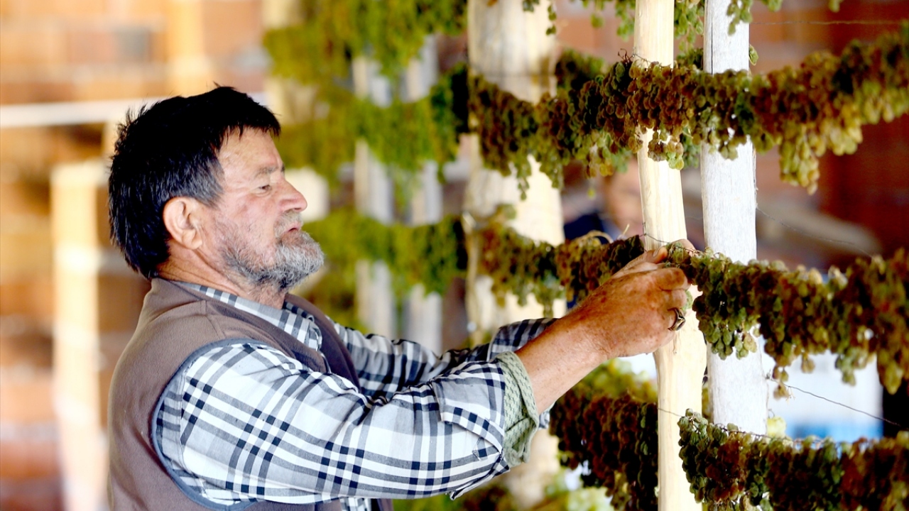 200 yıllık asmalardan hasat edilen üzümleri gölgede kurutup satıyorlar