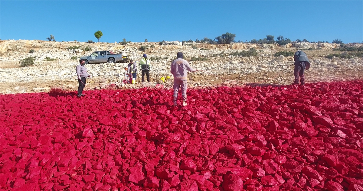 Boyama işleminde 8 bin litre kırmızı, 2 bin 500 litre beyaz boya kullanıldı.