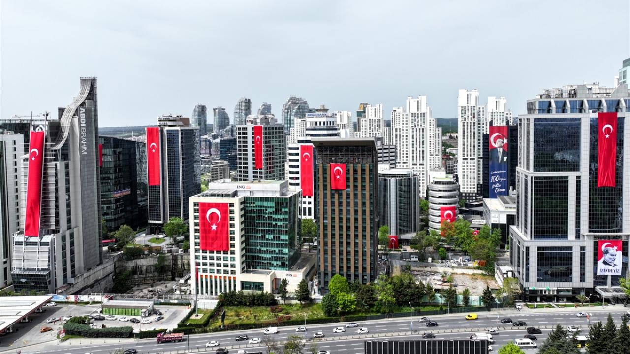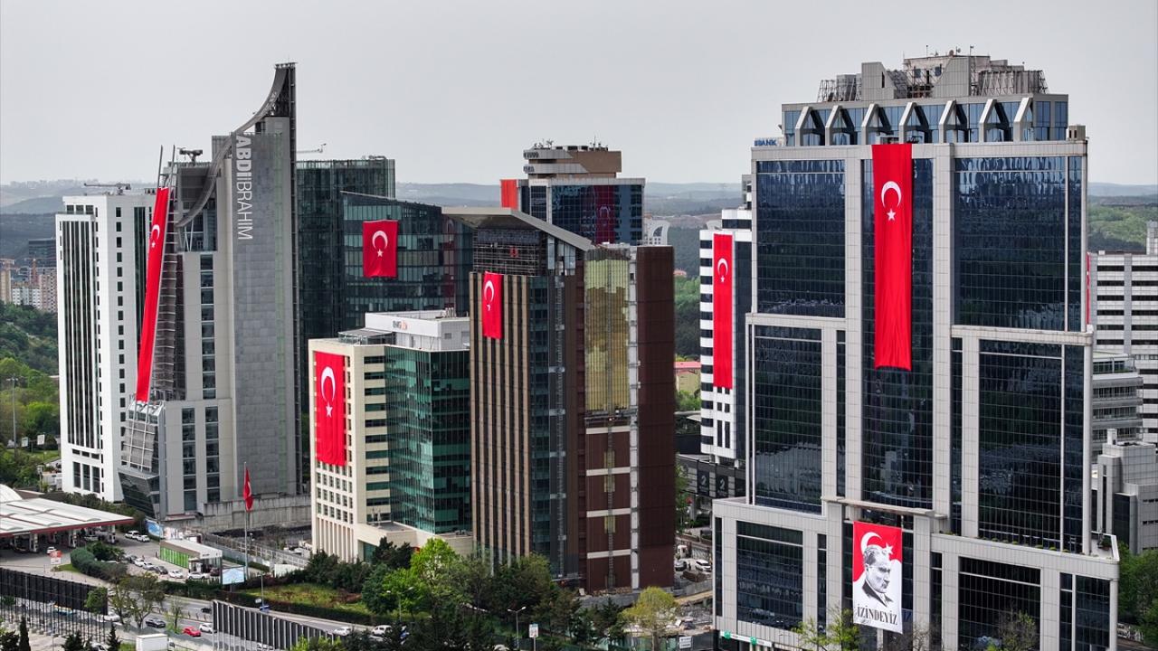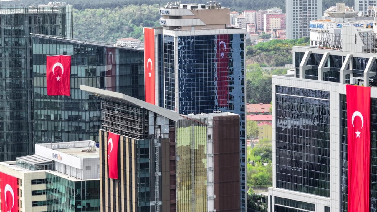 23 Nisan kutlamaları kapsamında Maslak'ta bulunan binalara Türk bayrakları asıldı