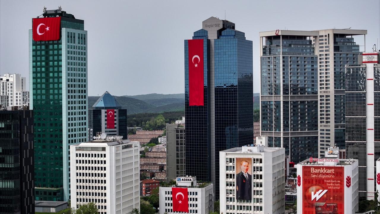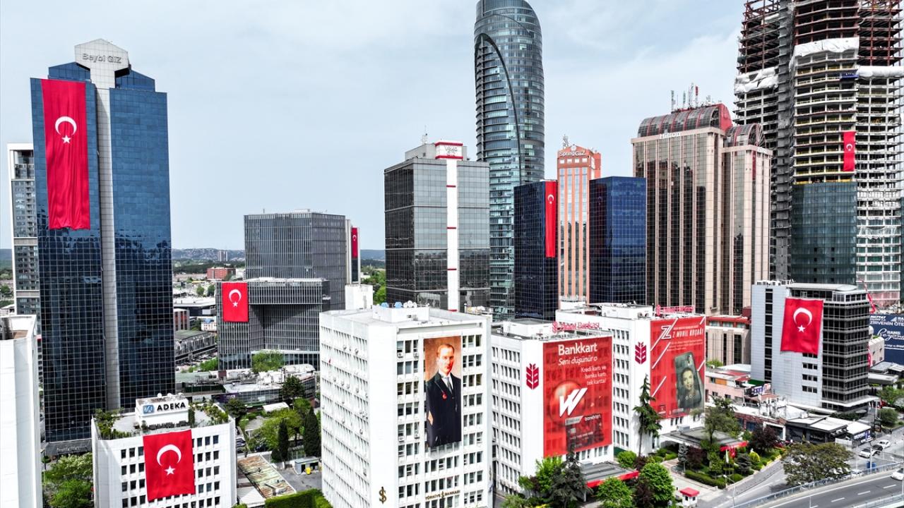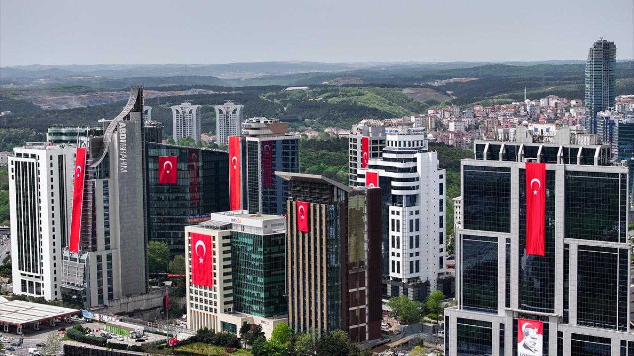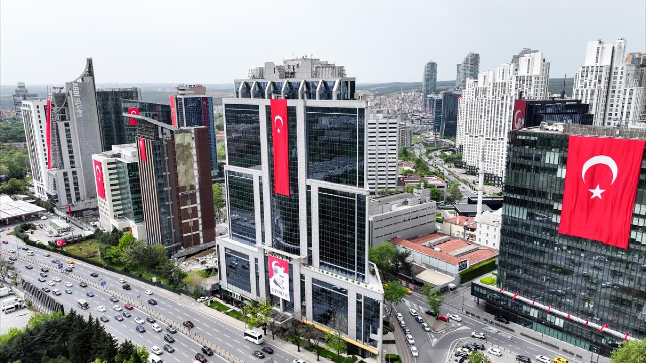 23 Nisan kutlamaları kapsamında Maslak'ta bulunan binalara Türk bayrakları asıldı