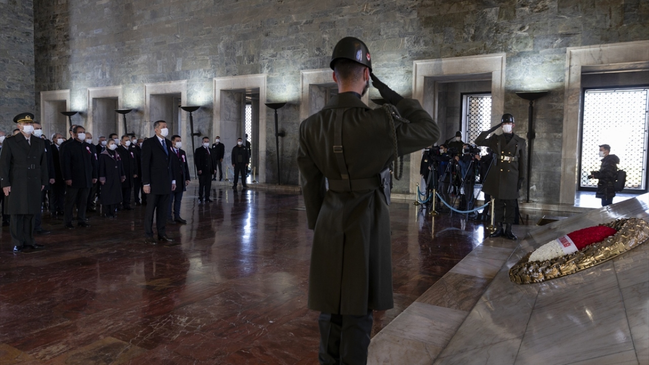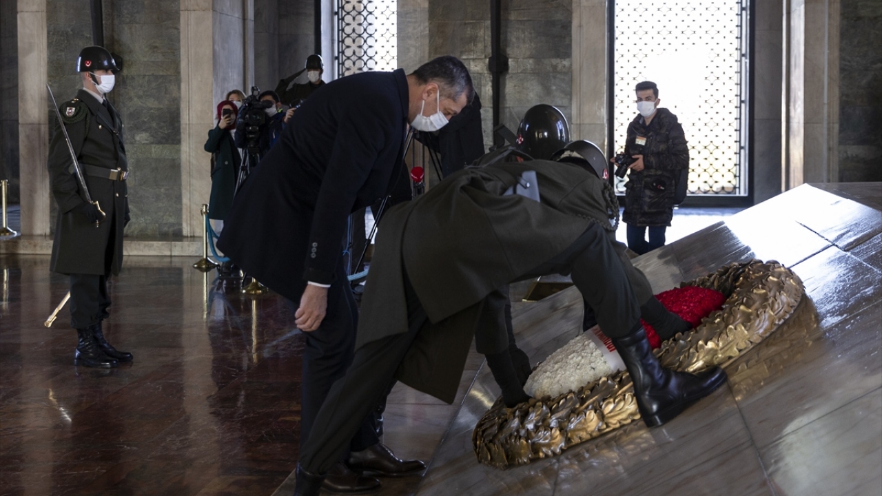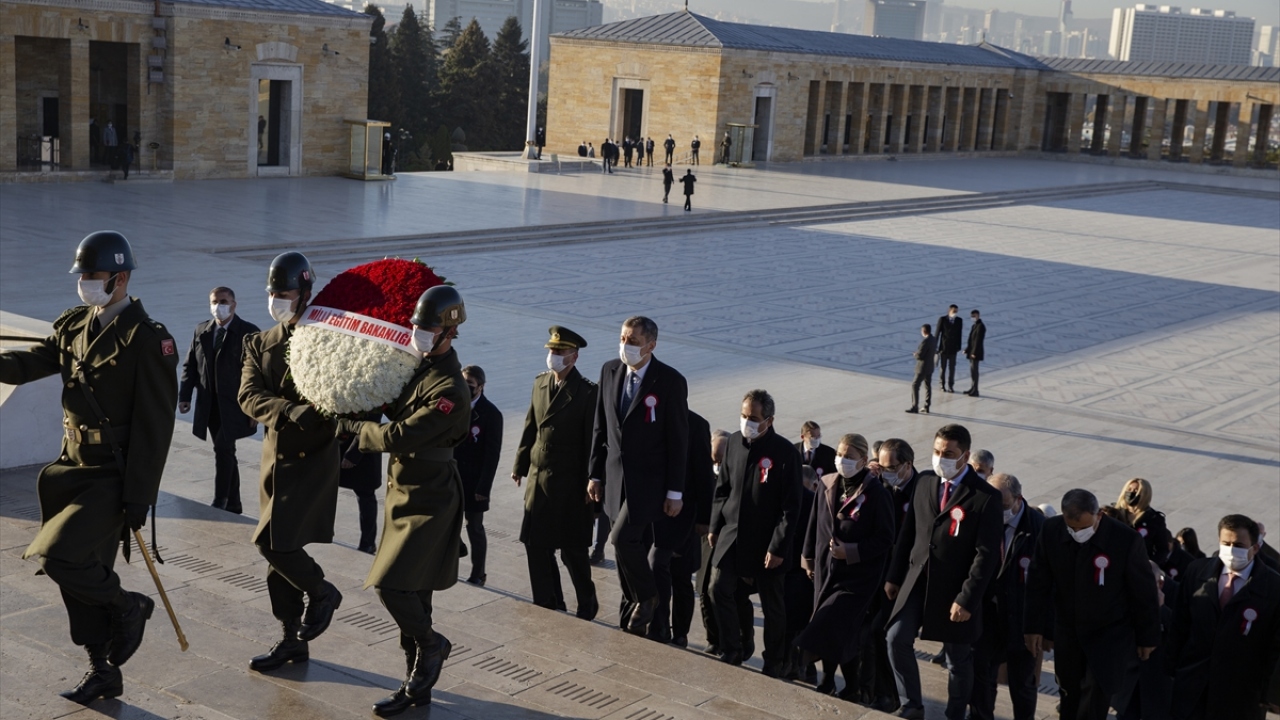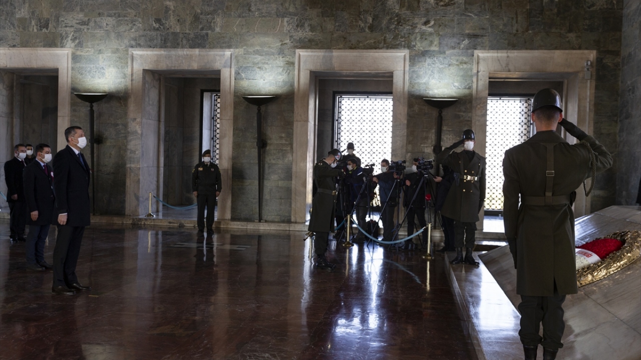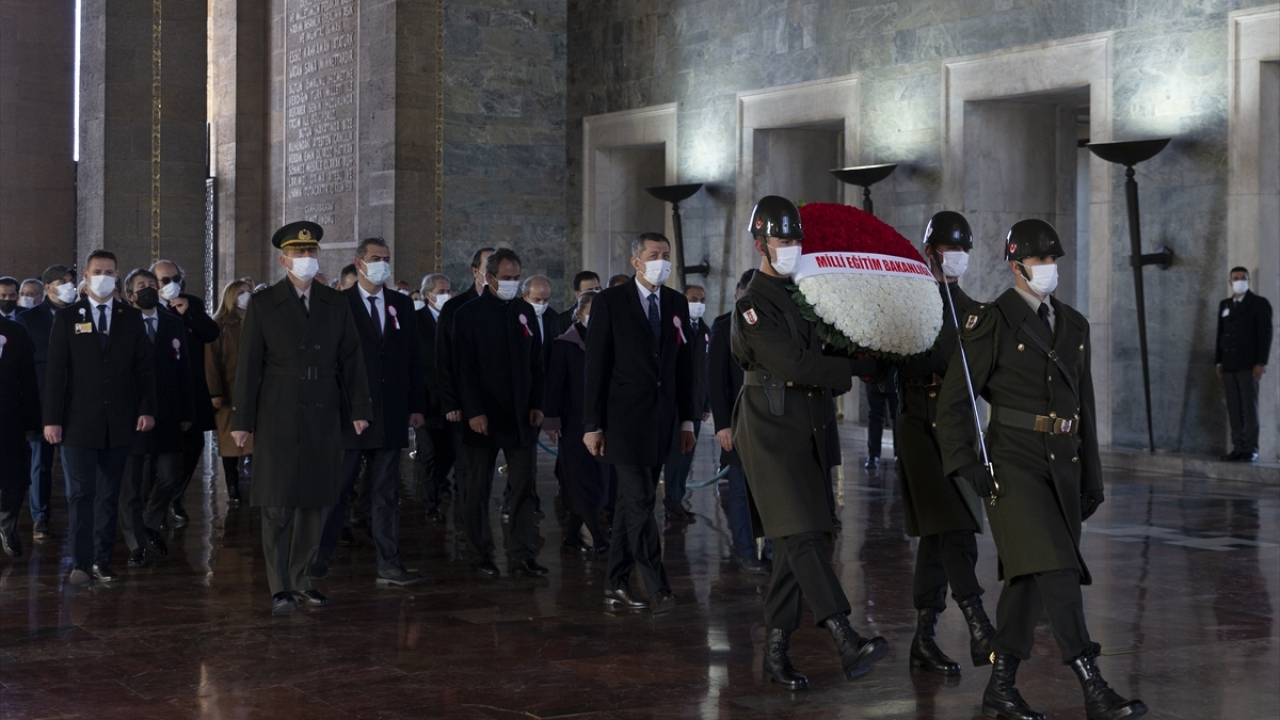 Bakan Selçuk`un mozoleye çelenk bırakmasının ardından saygı duruşunda bulunuldu.