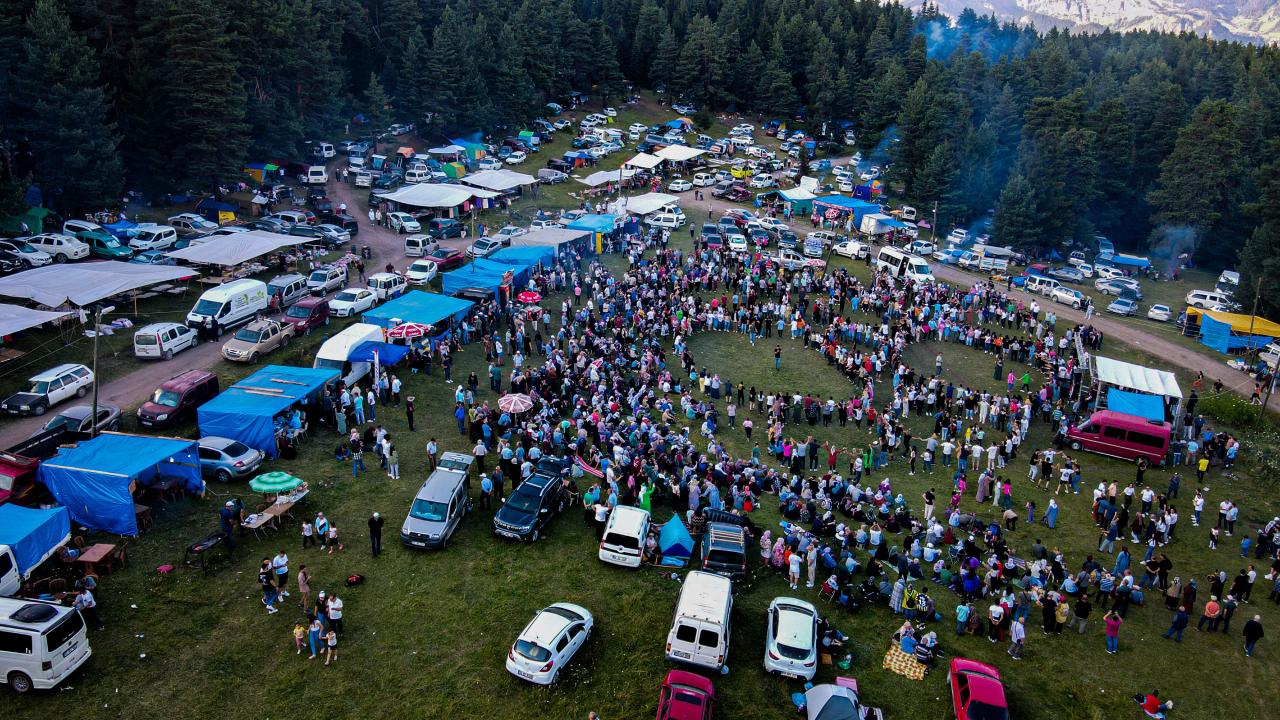 Bozulmamış orman örtüsü ve meralarıyla, muhteşem doğanın içinde yer alan şenliklerde vatandaşların horon halkaları havadan görüntülendi.