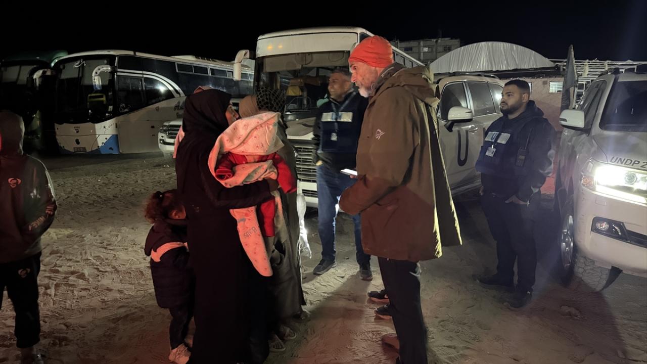 Birlemiş Milletler`e ait araçlarla Han Yunus kentine ulaşan Filistinliler, yakınları tarafından karşılandı.