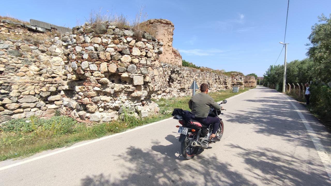 Her ân yıkılma tehlikesi olan surların hemen yanından yol geçiyor.