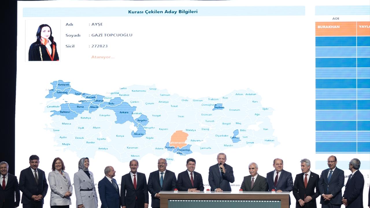 Konuşmaların ardından Cumhurbaşkanı Erdoğan ve beraberindekiler, butona basarak 1044 hakim ve savcının atama kuralarını başlattı.