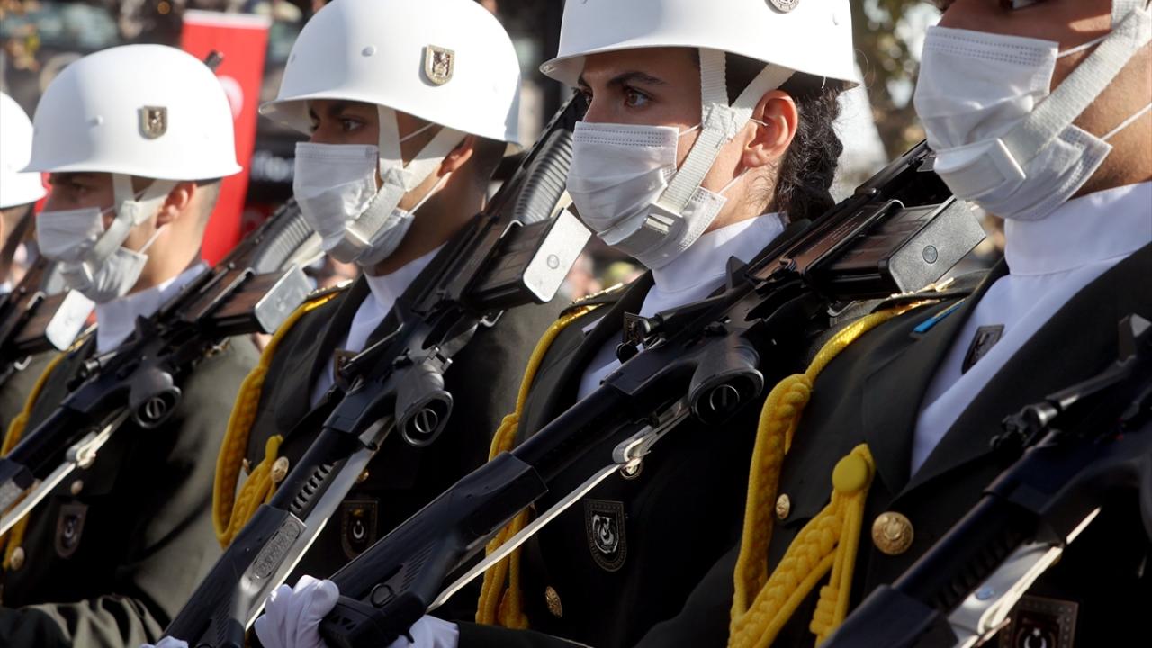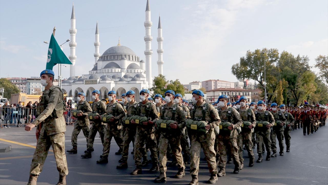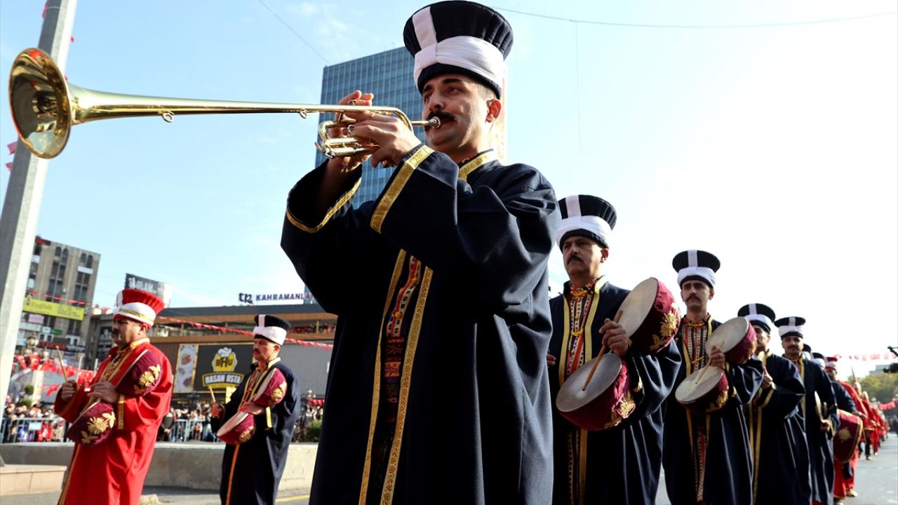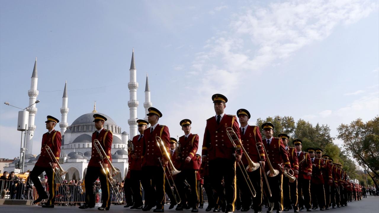 Cumhurbaşkanlığı Muhafız Alayı, TSK Armoni Mızıkası, kuvvet komutanlıkları personelinden oluşan Karma Bando`nun marşları eşliğinde ilerleyen kortejde, Çanakkale, Kurtuluş ve Kore savaşları ile Kıbrıs Barış Harekatı gazilerini temsil eden askerlerin bulunduğu "Tarihi Bölük" de geçiş yaptı.