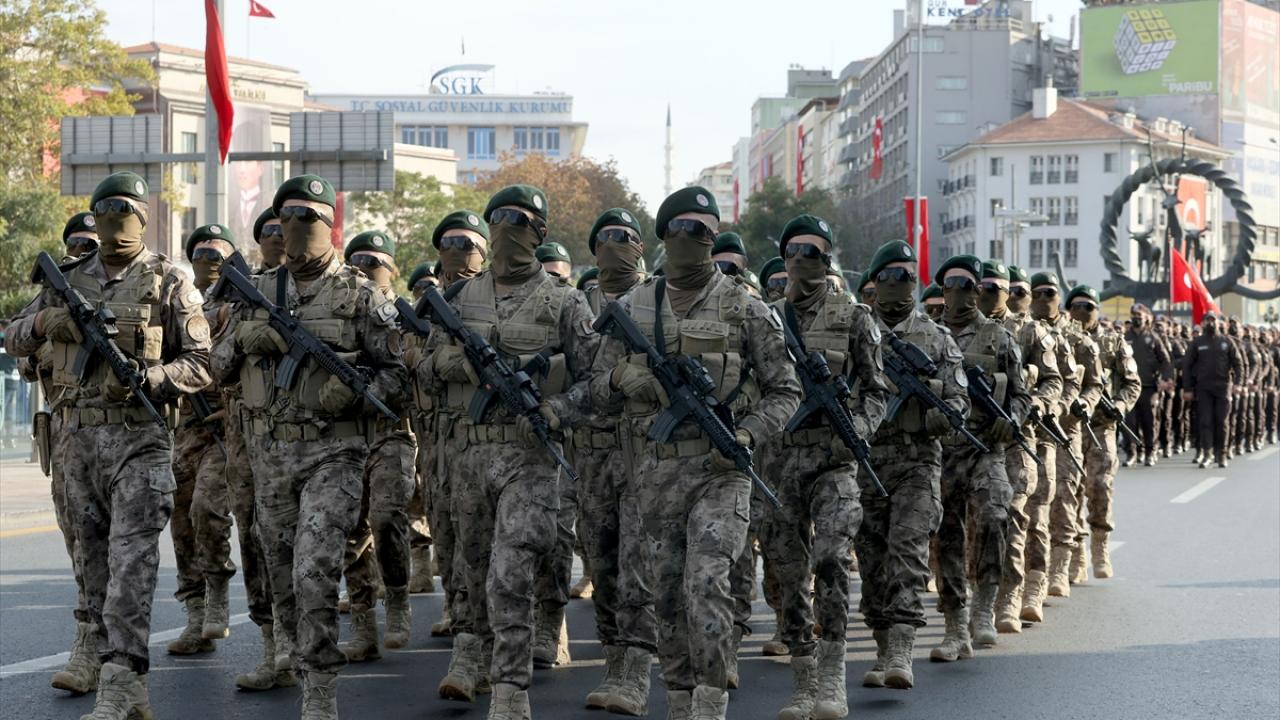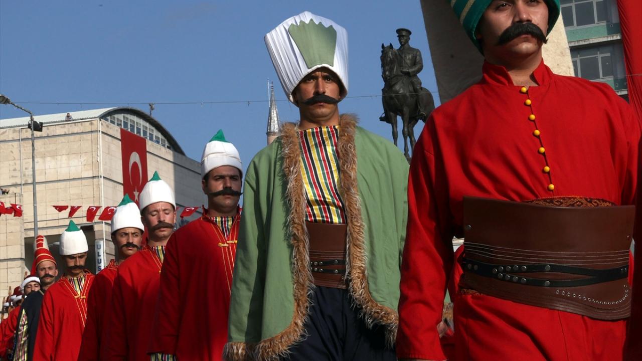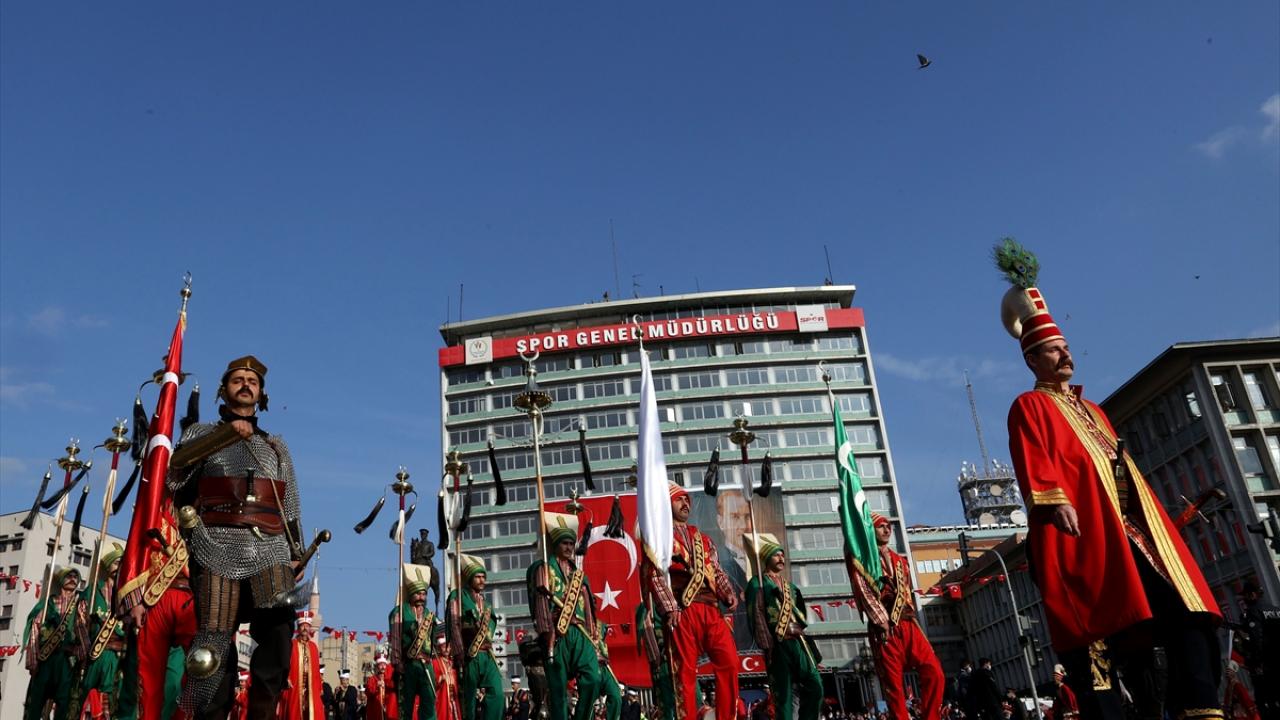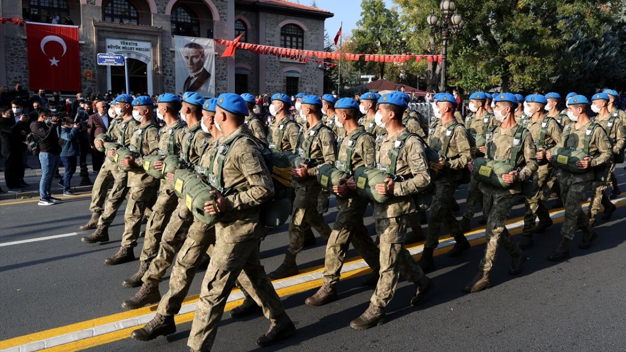 Cumhurbaşkanlığı Muhafız Alayı, TSK Armoni Mızıkası, kuvvet komutanlıkları personelinden oluşan Karma Bando`nun marşları eşliğinde ilerleyen kortejde, Çanakkale, Kurtuluş ve Kore savaşları ile Kıbrıs Barış Harekatı gazilerini temsil eden askerlerin bulunduğu "Tarihi Bölük" de geçiş yaptı.
