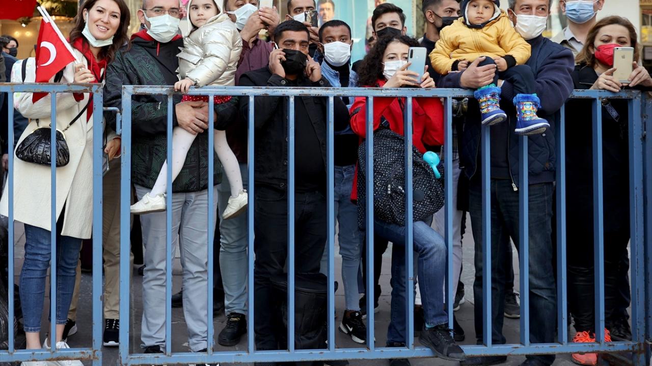 Kortej yürüyüşünü ellerinde Türk bayraklarıyla izlemeye gelen vatandaşlar, marşlara eşlik etti, asker ve polislere sevgi gösterisinde bulundu.