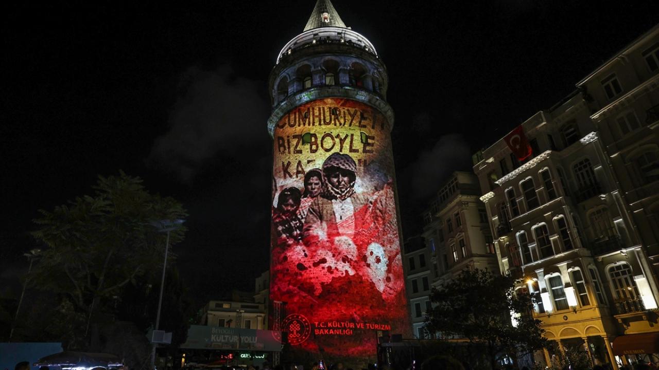29 Ekim Cumhuriyet Bayramı, Galata Kulesi`ne yansıtılan görsellerle kutlandı.