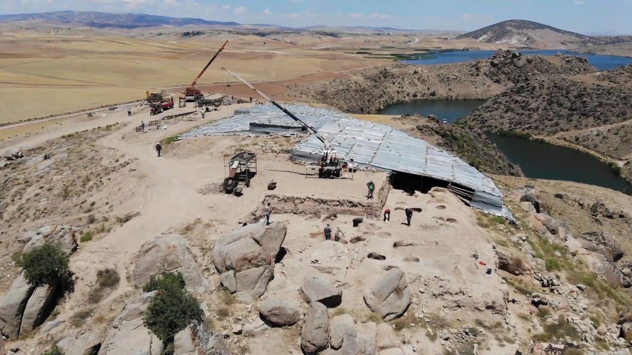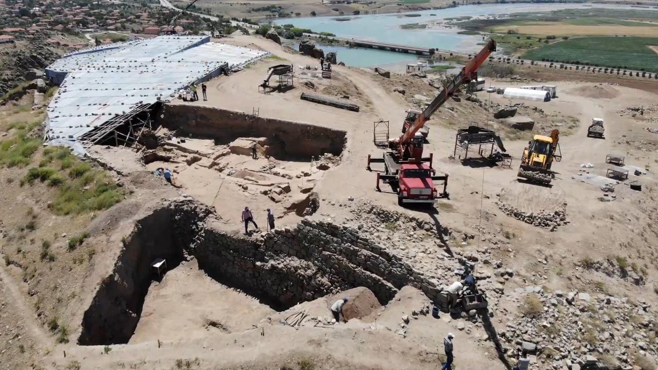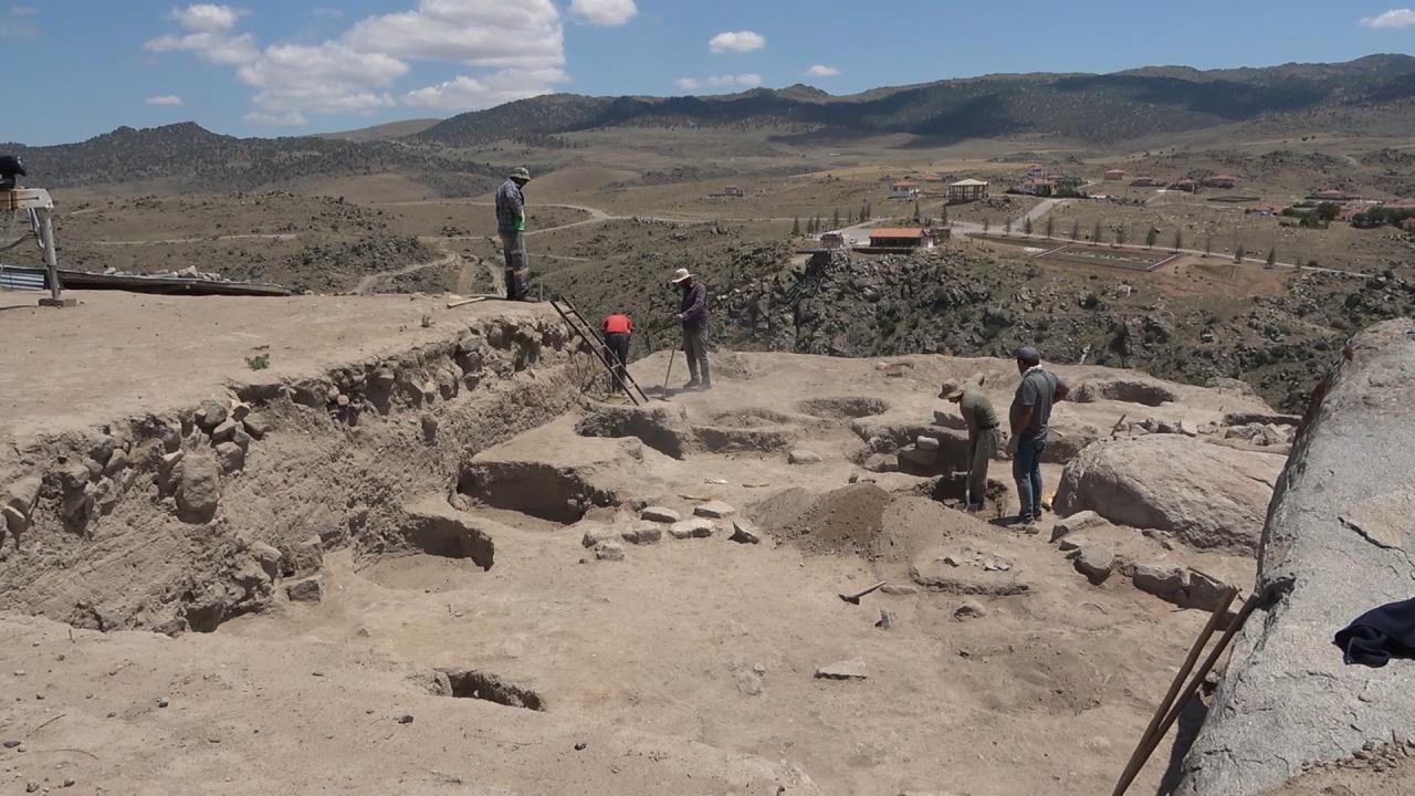 “Bu seneki amacımız; arkada görünen bu Geç Demir Çağı’na ait. Milattan Önce 7’nci yüzyıl, 2 bin 700 sene önceki sur duvarları üzerinde çalışıyoruz. Buradaki zemindeki tabaka, milattan önce Hititlere ait bir tabaka. Bu Demir Çağ üzerindeki çalışmaları bitirip, aşağıdaki Hitit tabakasına girmeye çalışıyoruz. Şimdi 3 takım grup halinde çalışmaları sürdürüyoruz. Epey geniş alanda mesela burada 40-60 metrekare içerisinde çalışmalar yapılıyor. Şimdiye kadar yapılan çalışmada en yeni Osmanlı dönemine ait yerleşim yeri, 4-5 bin yıl önceki döneme ait yerleşim yeri burada tespit edildi. Bizim amacımız yoğun olarak Milattan Önce 2 bin. Burada büyük şehir vardı. Burada biz tepenin üzerinde şu an çalışıyoruz. Bunun arkasında batıda bir ‘aşağı şehir’ var. Orada ticaret merkezi o dönemde varmış. Burada bir ticaret merkezi şehir üzerinde çalışmaları yapmayı planlıyoruz.”