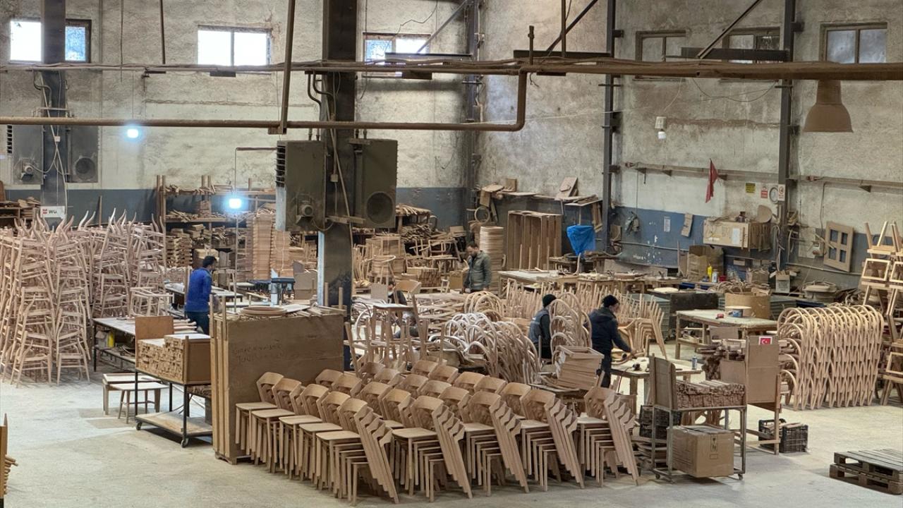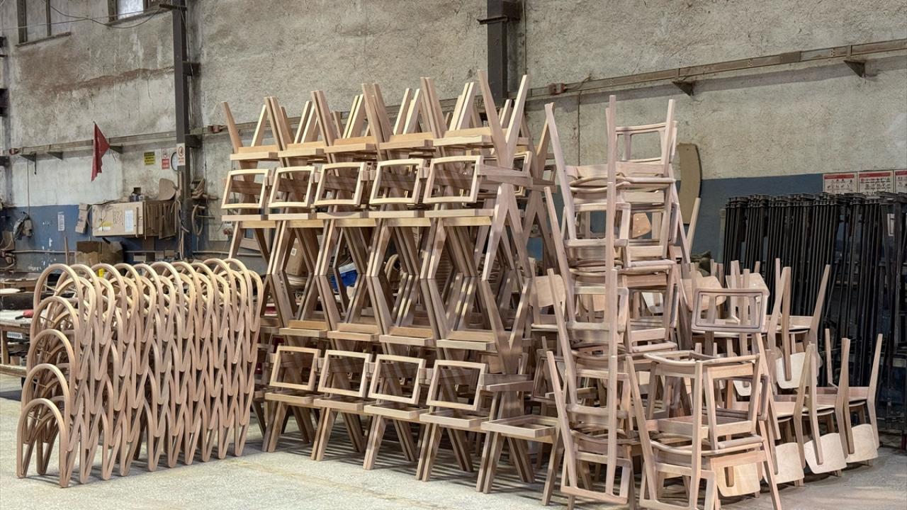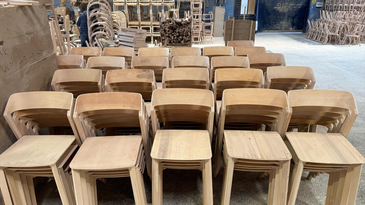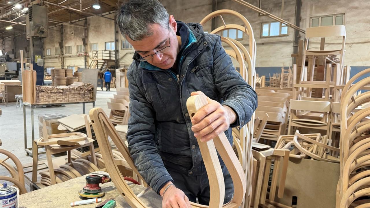 Fabrikada kayın ağacından üretilen sandalyeler, yurt içi pazarın yanı sıra Avrupa ülkeleri, ABD ve Fas`ın da aralarında olduğu 50`yi aşkın ülkeye gönderiliyor.