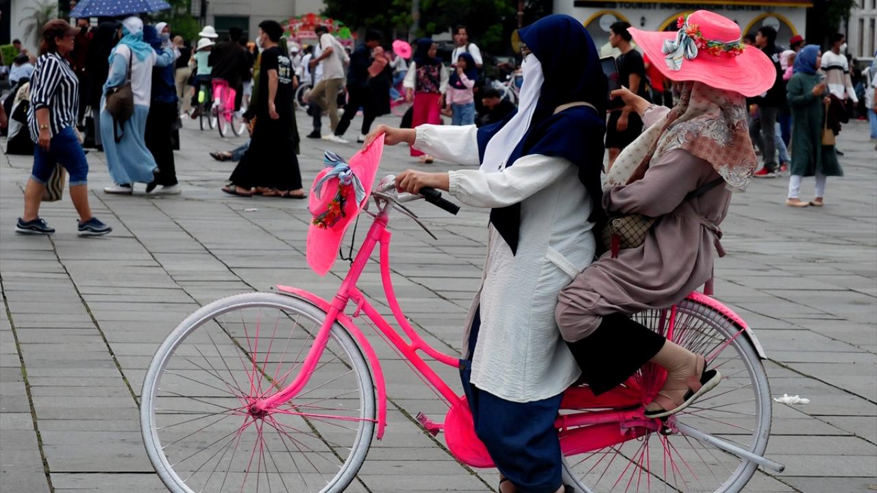 20 Aralık 2022`de Endonezya`da Kovid-19 salgını nedeniyle uygulamaya konulan tüm kısıtlamaların kaldırıldığı bildirildi. Bazı vatandaşlar, bisiklete binerken görüldü. (Arşiv)