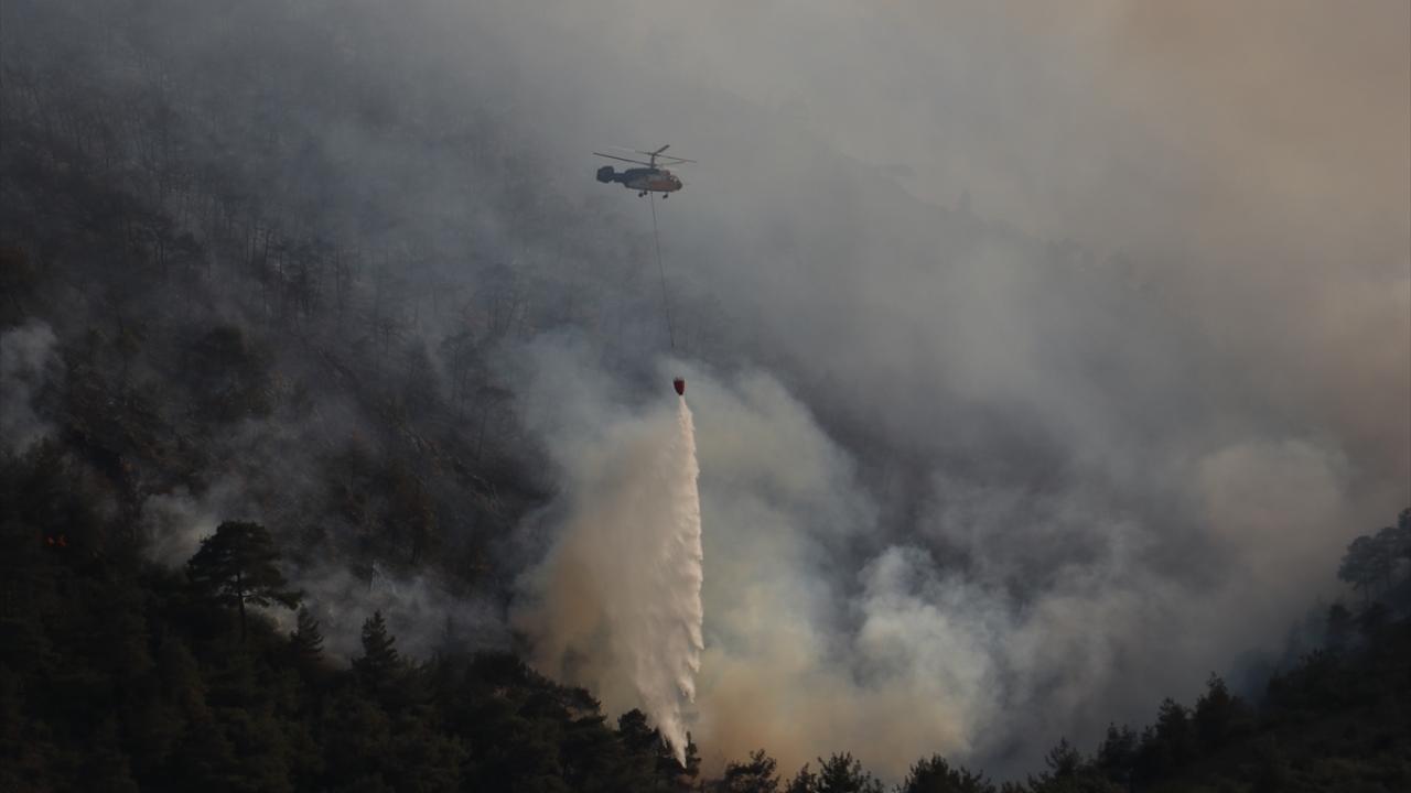 Havadan 13 helikopter ve 5 uçak, karadan da 60 arazöz, 19 su ikmal aracı, dozerler ve çok sayıda destek ekibiyle alevler söndürülmeye çalışılıyor.