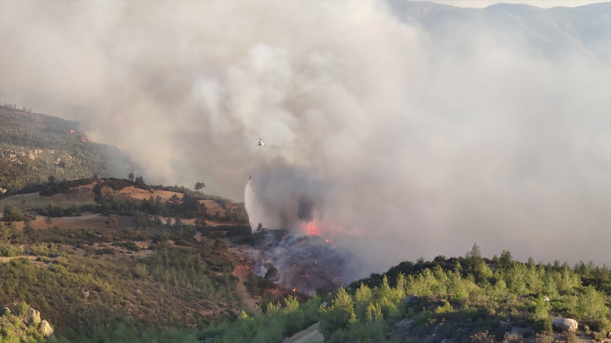 Kızılkeçili köyü yakınlarında dün saat 16.31`de başlayan yangına gün doğumuyla helikopter ve uçaklarla müdahale yoğunlaştı.