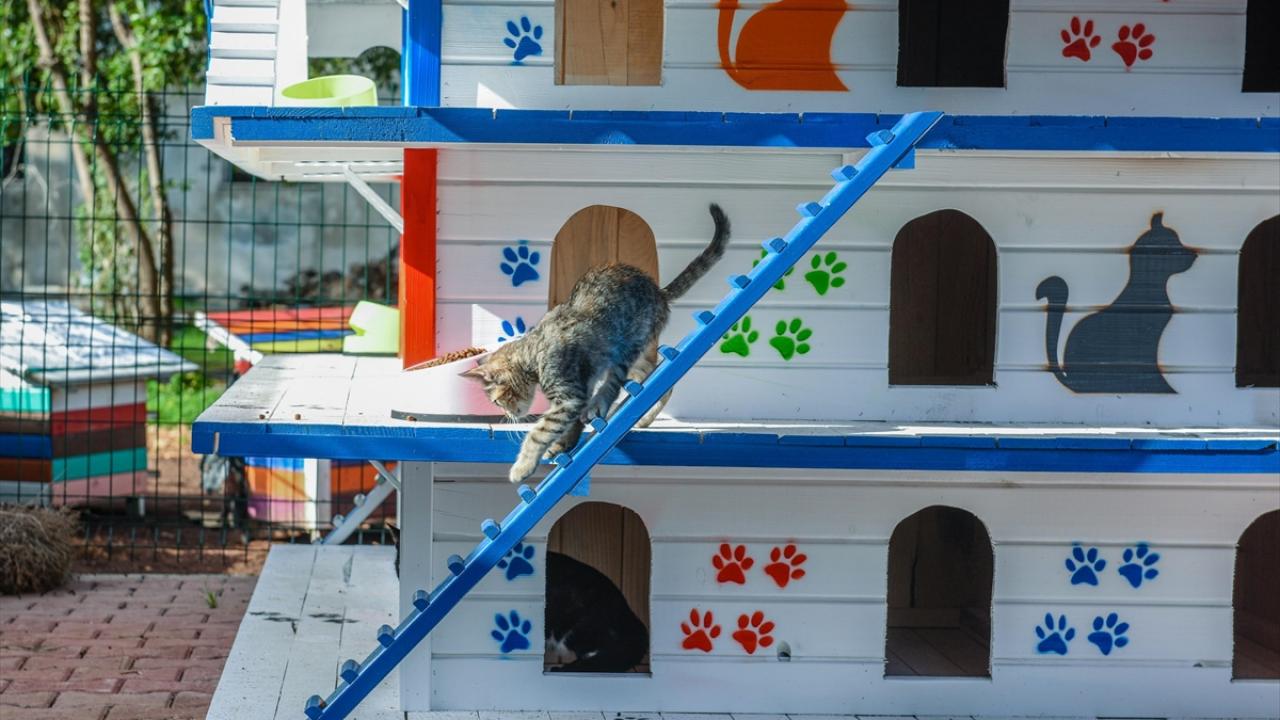 Buranın yanına farklı kedi evleri de konularak, DokumaPark`ta "pati şehri" oluşturuldu.
