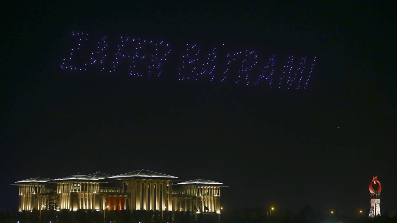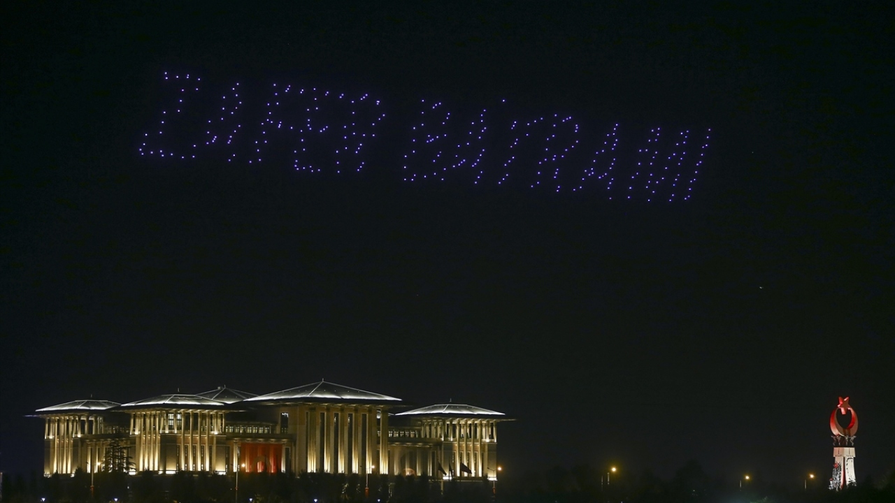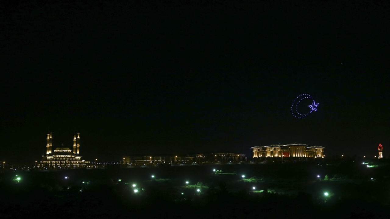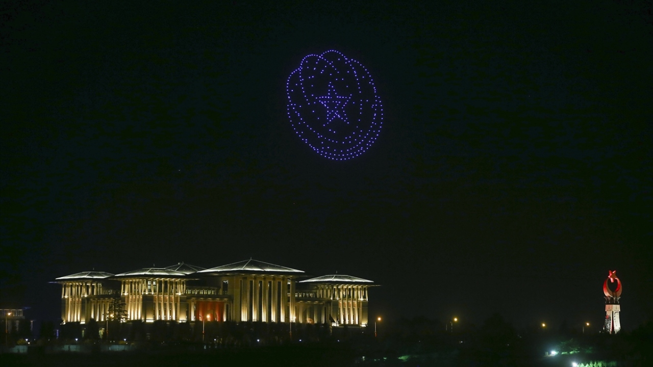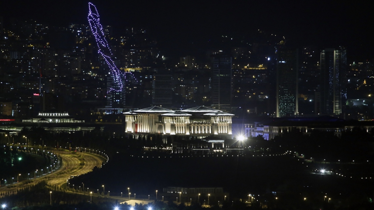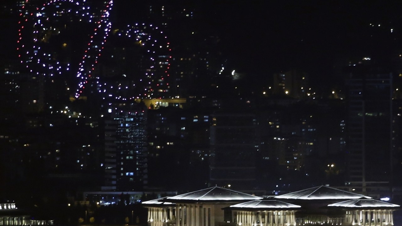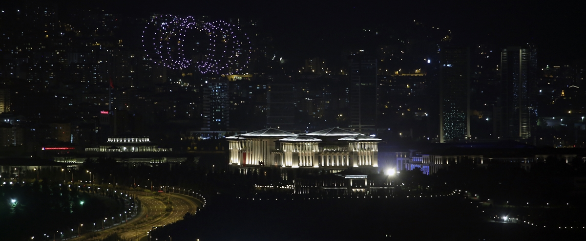 Cumhurbaşkanlığı Külliyesi'nde 30 Ağustos Zafer Bayramı kutlamaları kapsamında 300 insansız hava aracı (İHA) ile ışık gösterisi yapıldı.