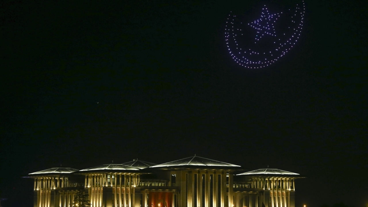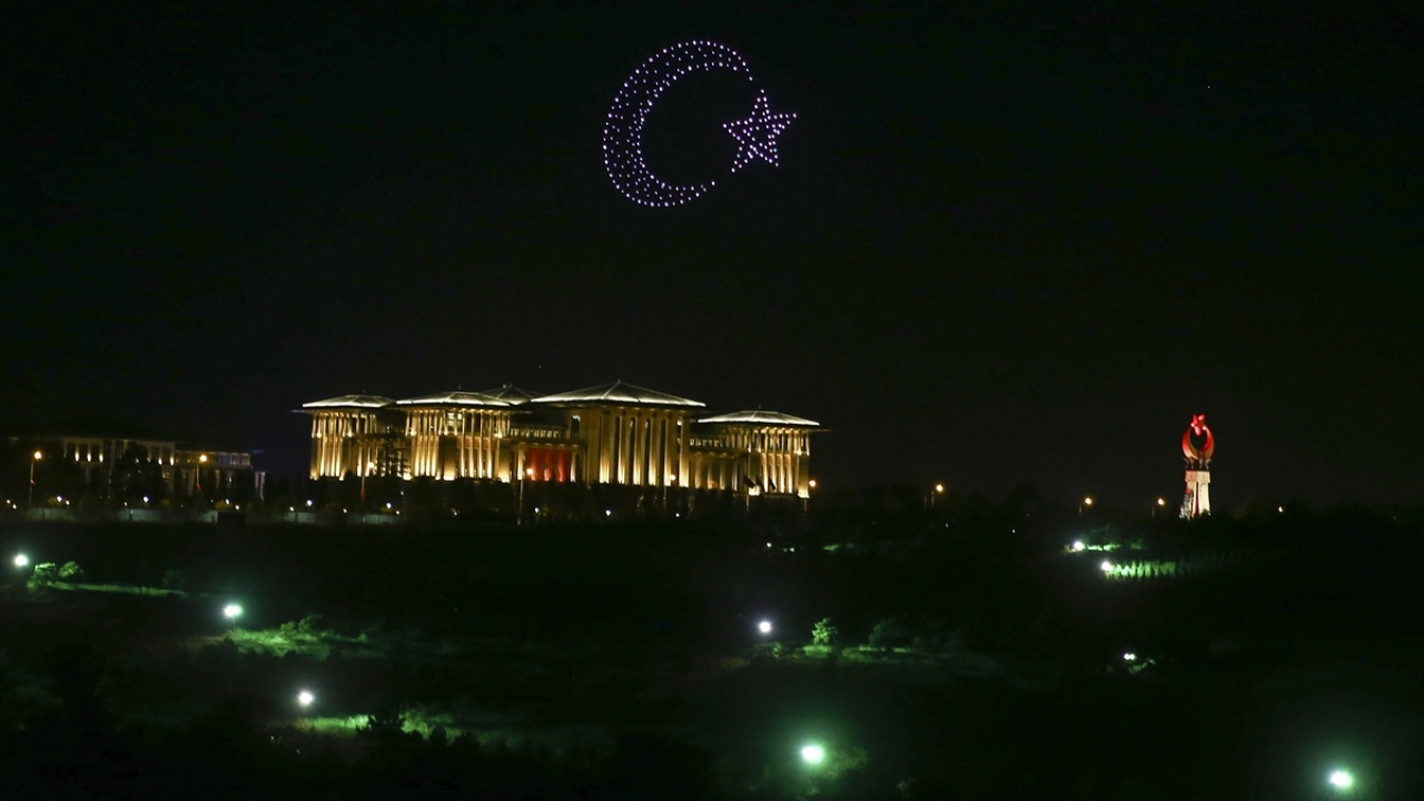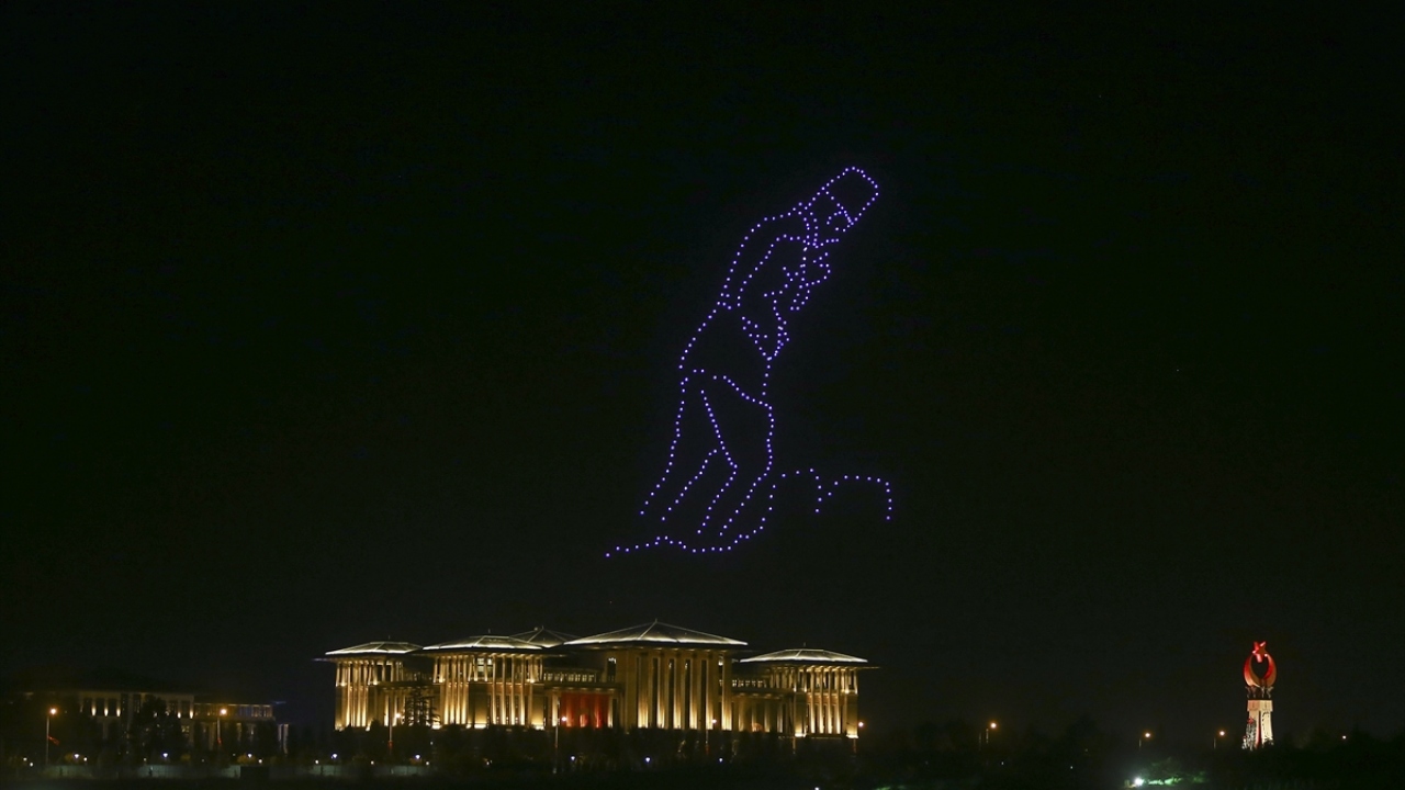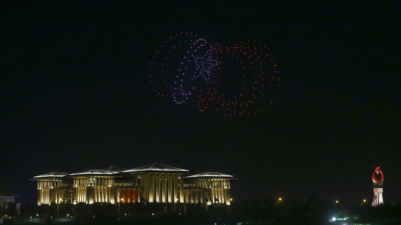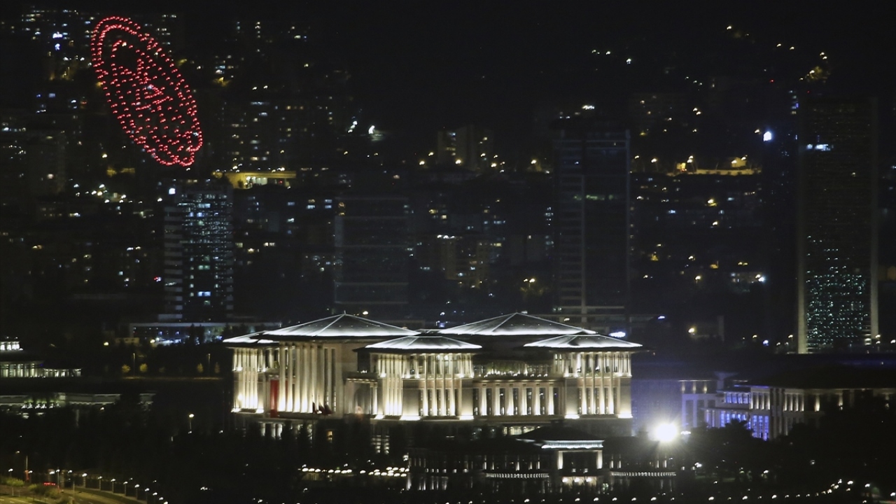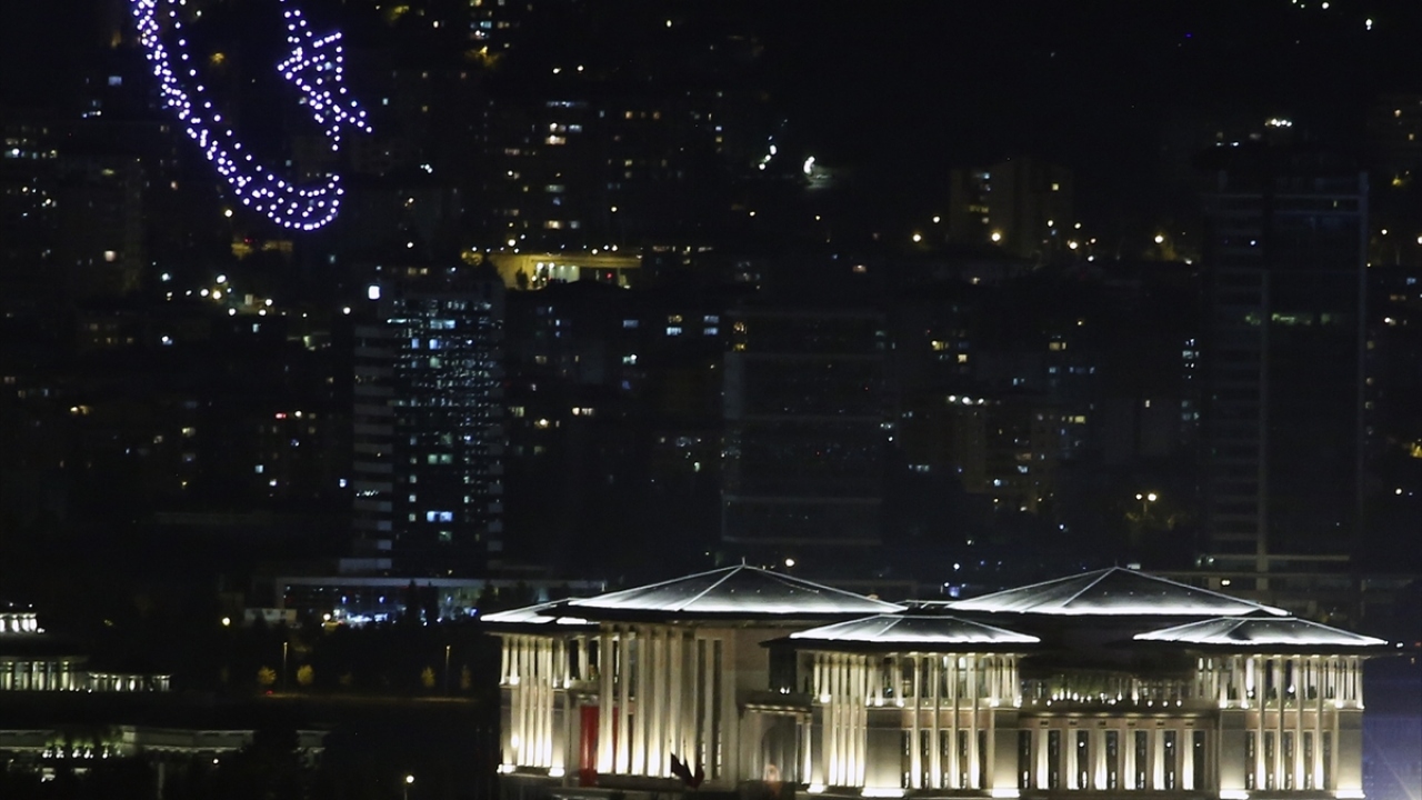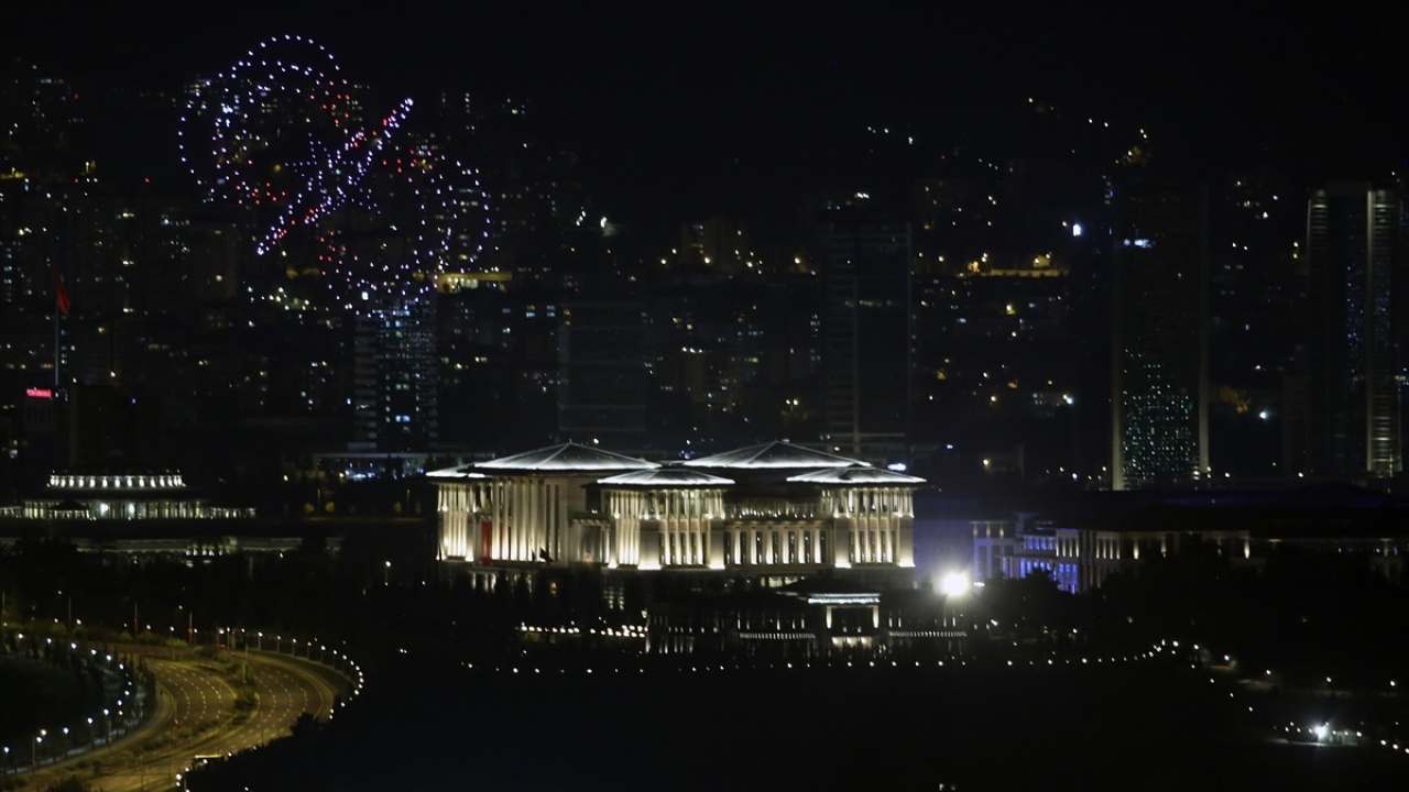 Cumhurbaşkanlığı Külliyesi'nde 30 Ağustos Zafer Bayramı kutlamaları kapsamında 300 insansız hava aracı (İHA) ile ışık gösterisi yapıldı.