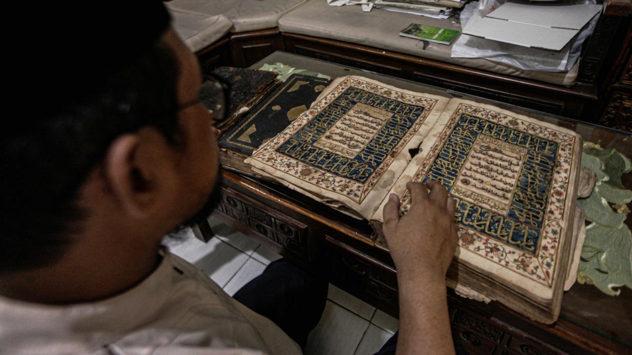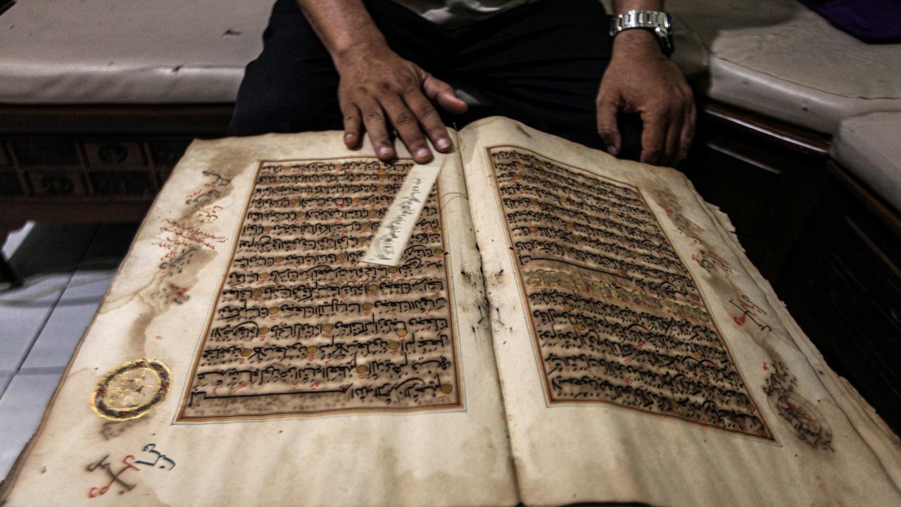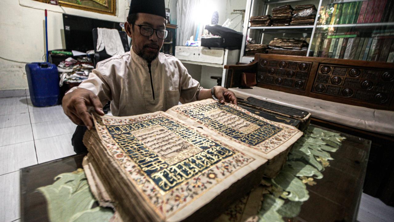 Endonezya'da, 300 yıl önce Palembang Darüsselam Sultanlığı döneminde yazılmış altın varaklı el yazması Kuran-ı Kerim görüntülendi.