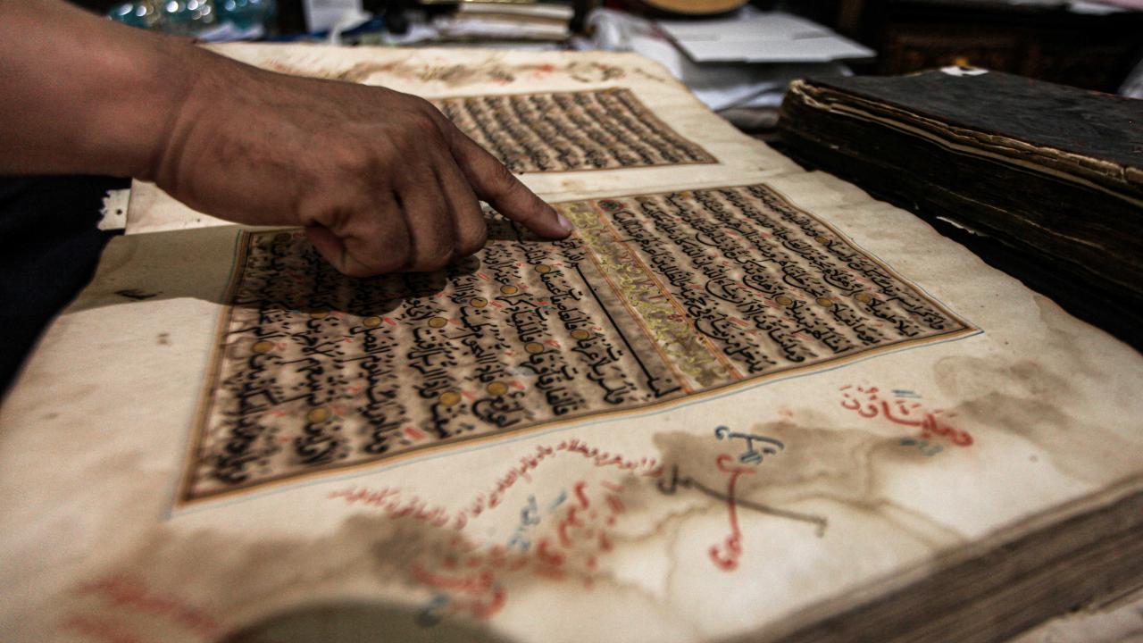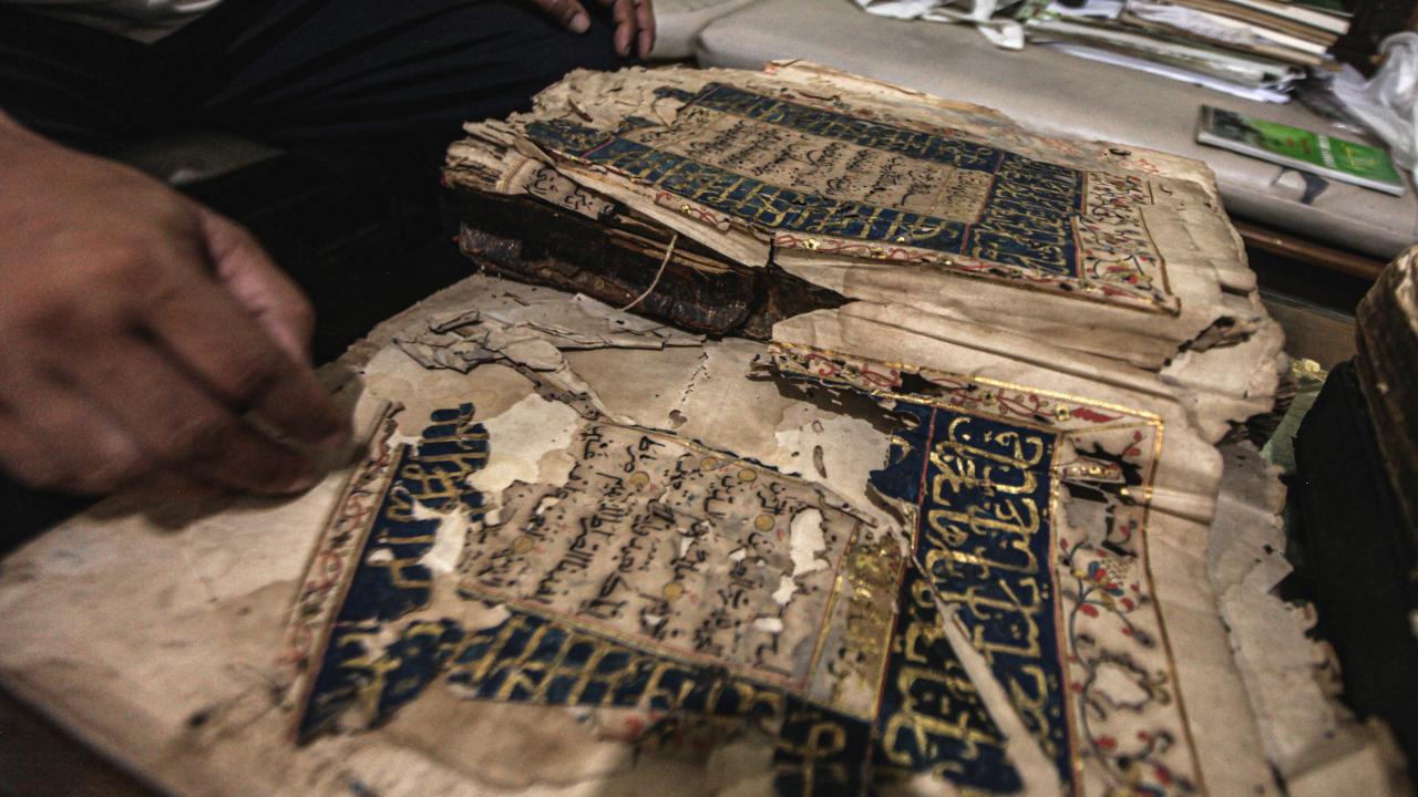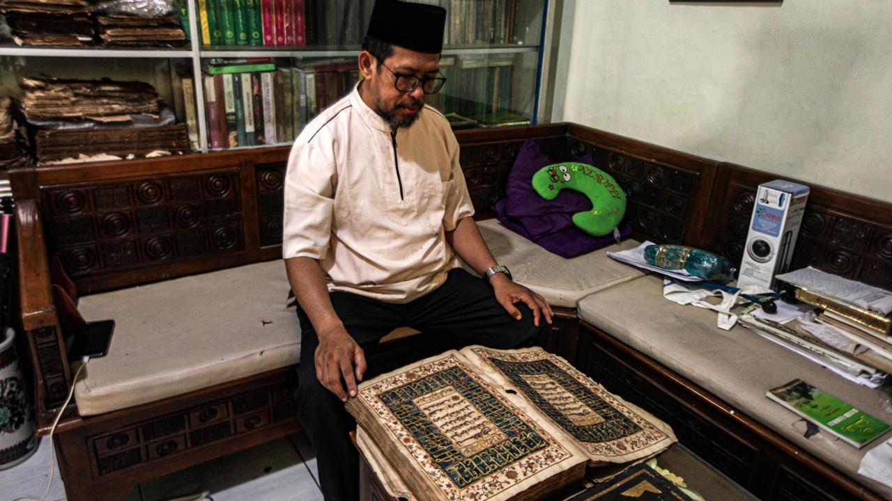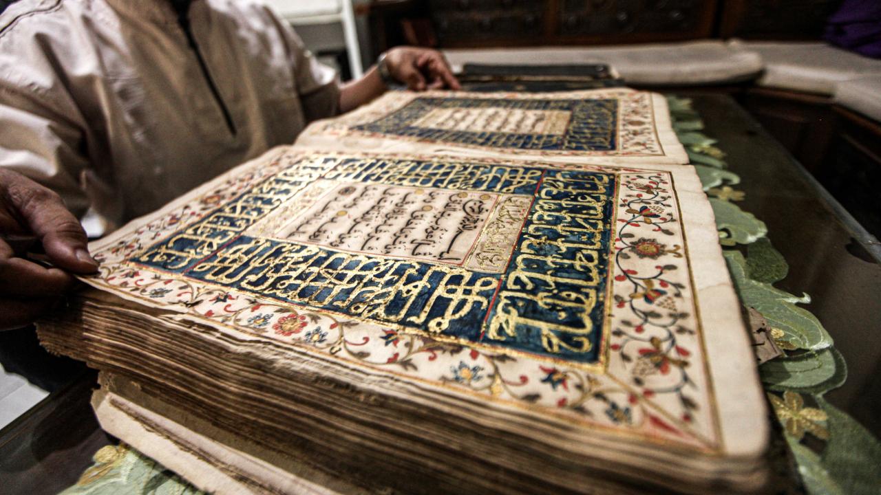 Endonezya'da, 300 yıl önce Palembang Darüsselam Sultanlığı döneminde yazılmış altın varaklı el yazması Kuran-ı Kerim görüntülendi.