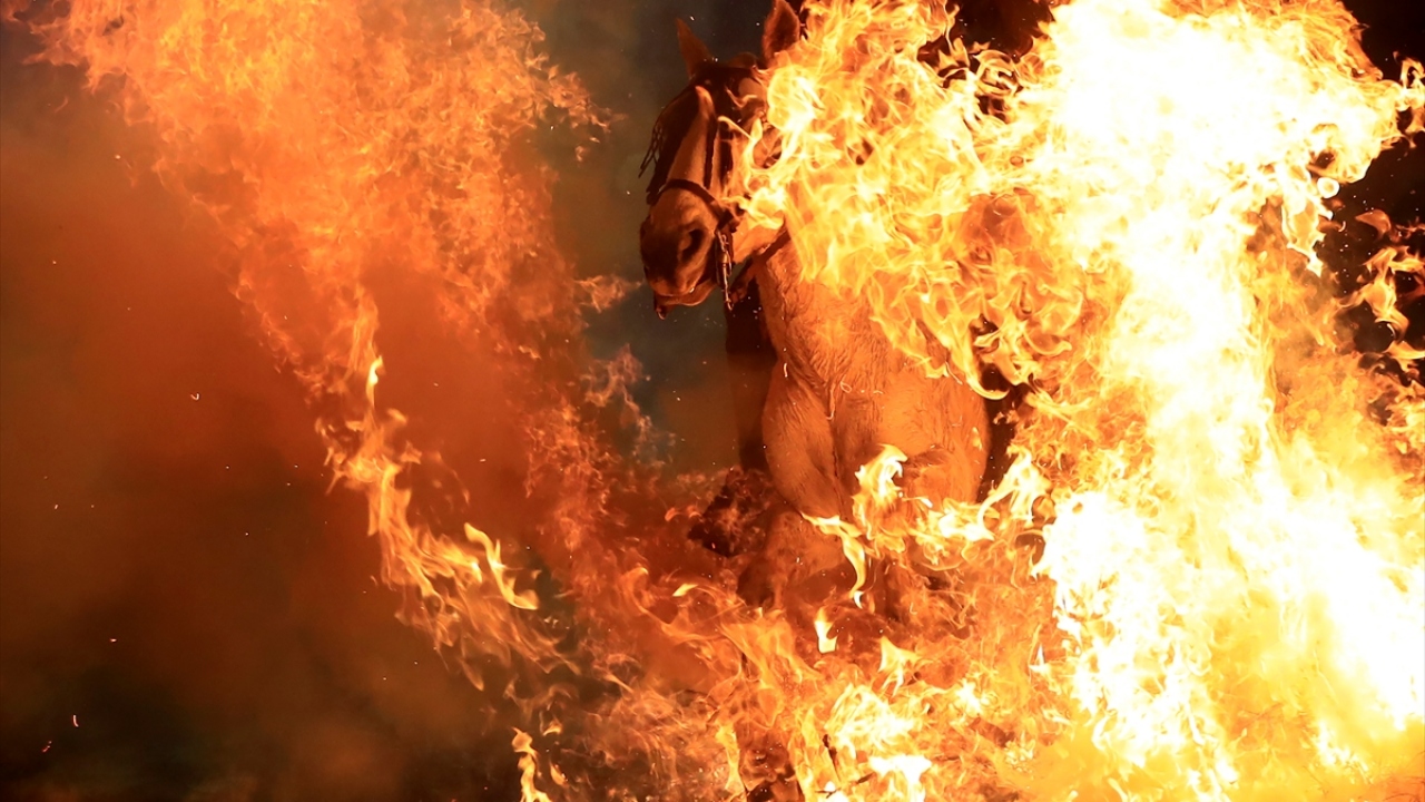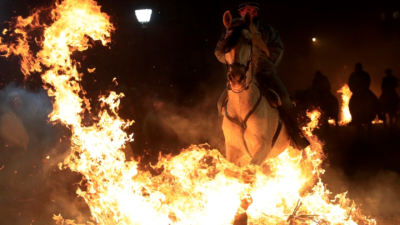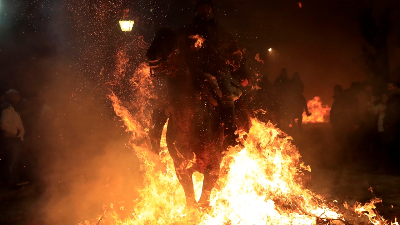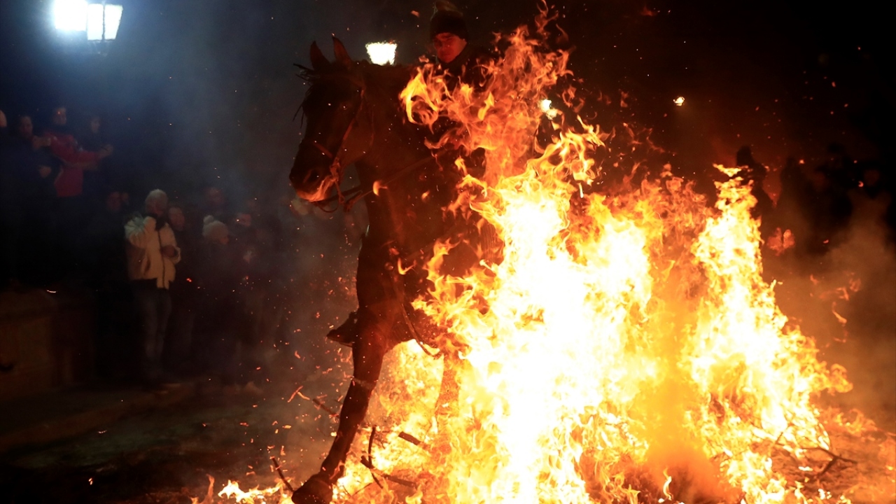 İspanya'nın küçük bir kasabasında yaşatılan 300 yıllık gelenekle, kötü ruhlardan arınıldığı ve salgın hastalıklardan korunduğuna inanılan atlar ateş üzerinde yürütüldü.