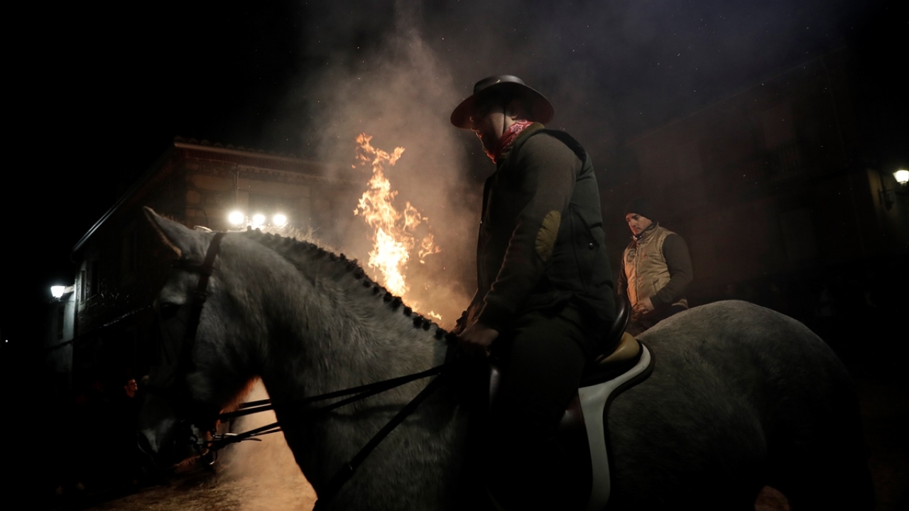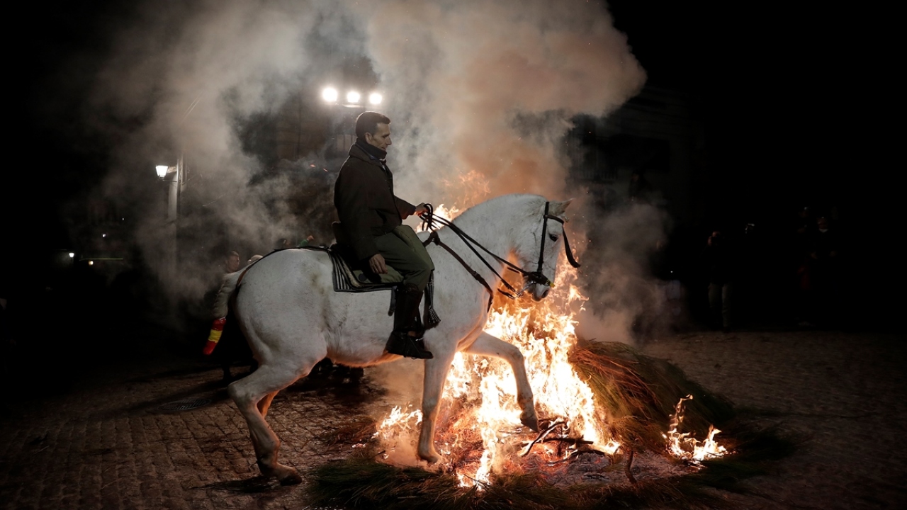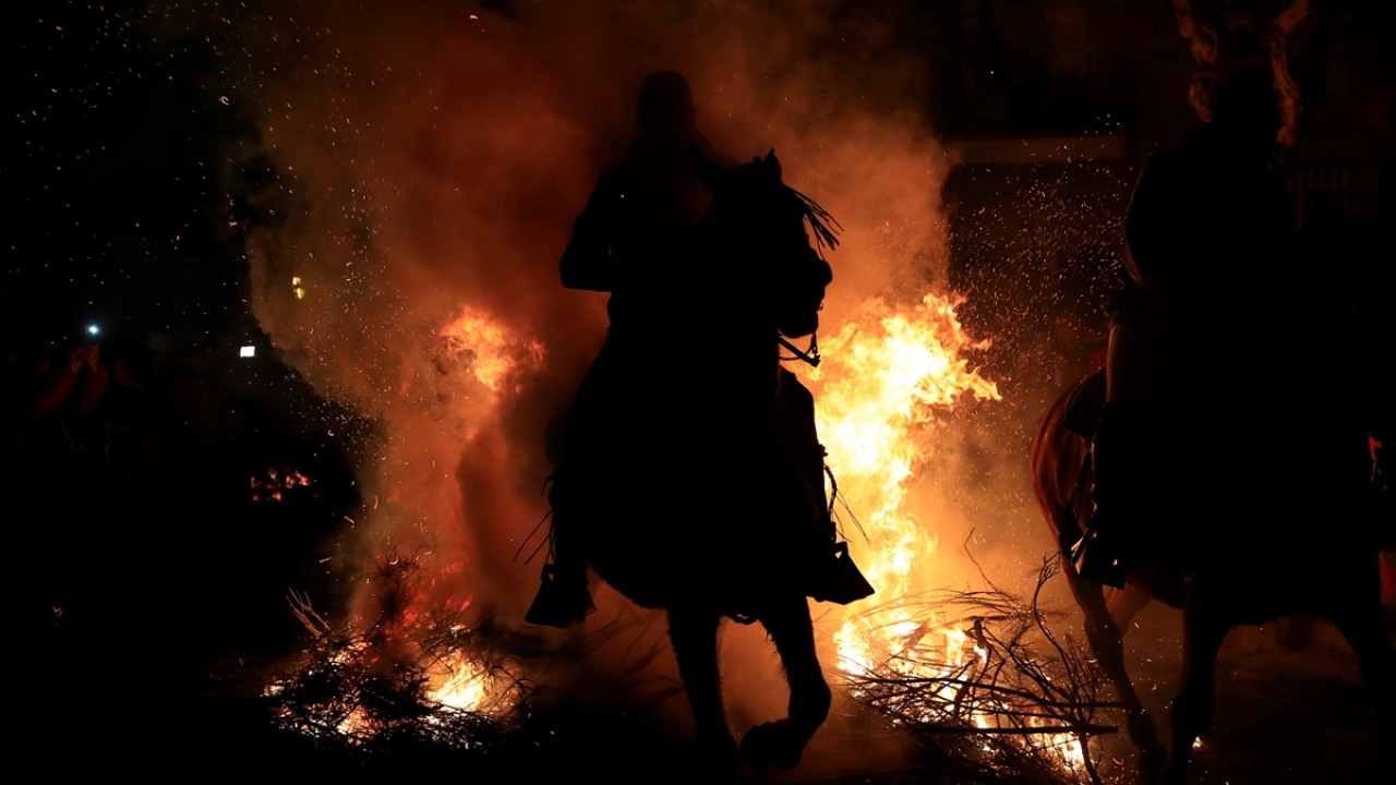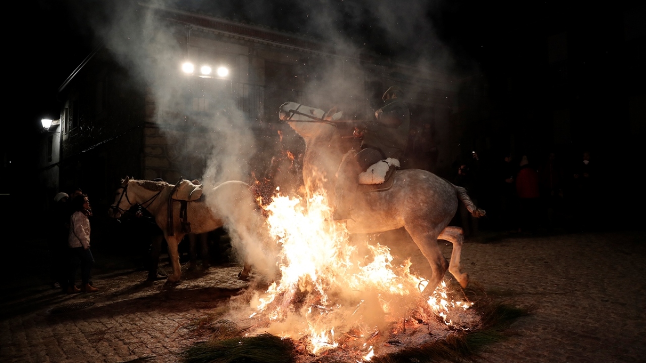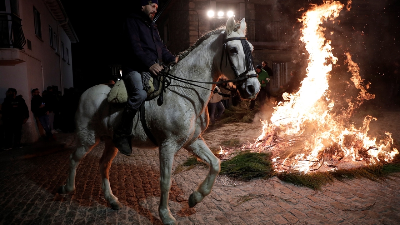 İspanya'nın küçük bir kasabasında yaşatılan 300 yıllık gelenekle, kötü ruhlardan arınıldığı ve salgın hastalıklardan korunduğuna inanılan atlar ateş üzerinde yürütüldü.