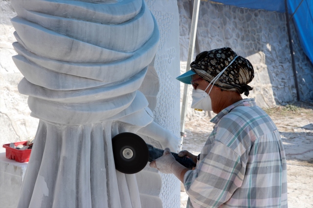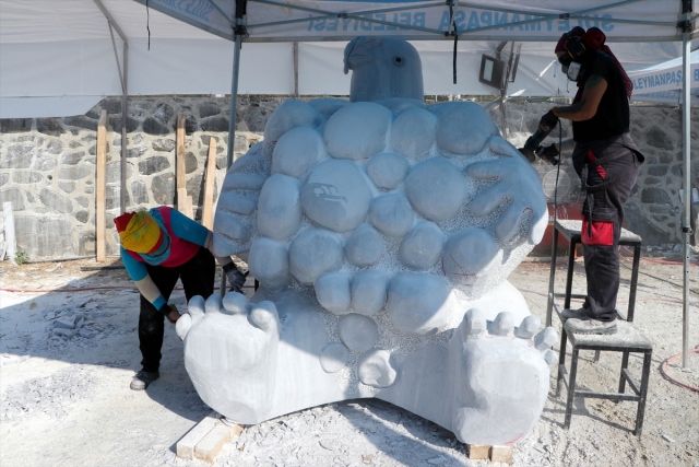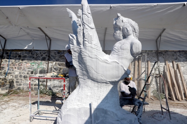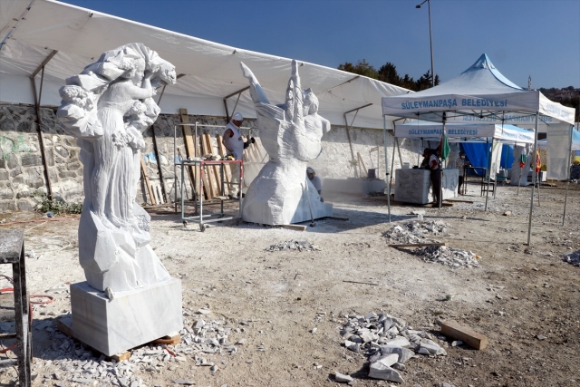 Tekirdağ Süleymanpaşa Belediyesi tarafından düzenlenen "4. Bisanthe Taş Heykel Sempozyumu" devam ediyor. Bu yıl dördüncüsü gerçekleştirilen sempozyuma katılan heykeltıraşlar, üzüm ve insan temalı çalışmalarında sona yaklaştı.