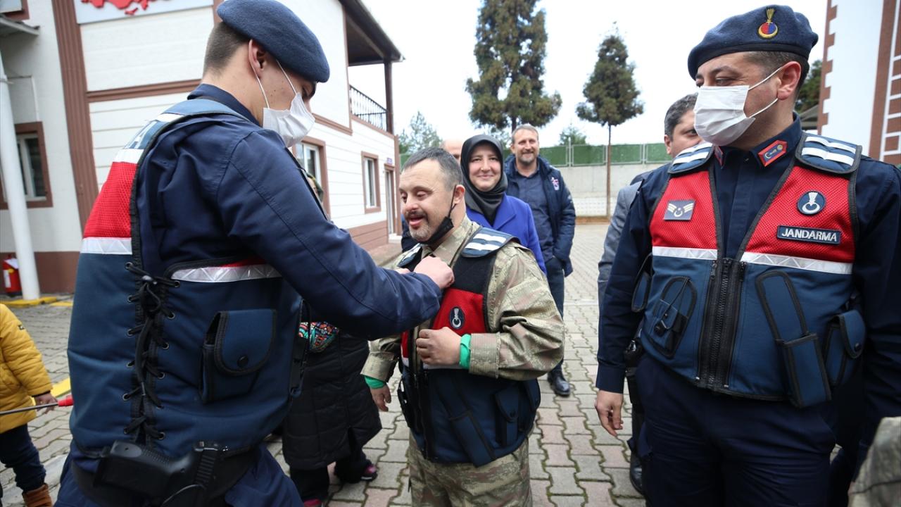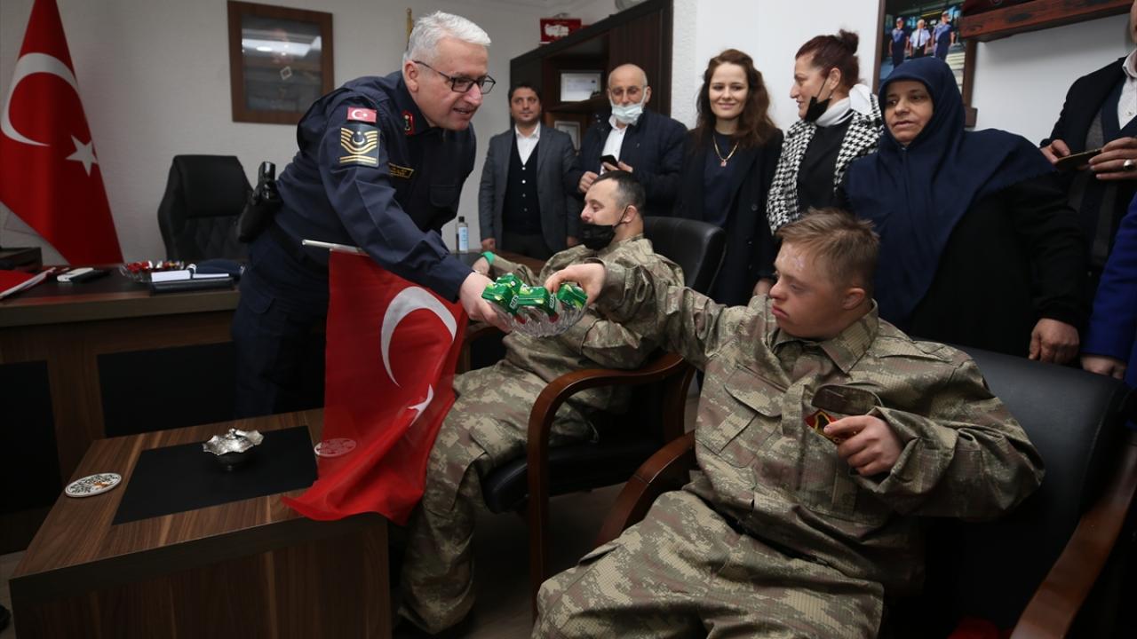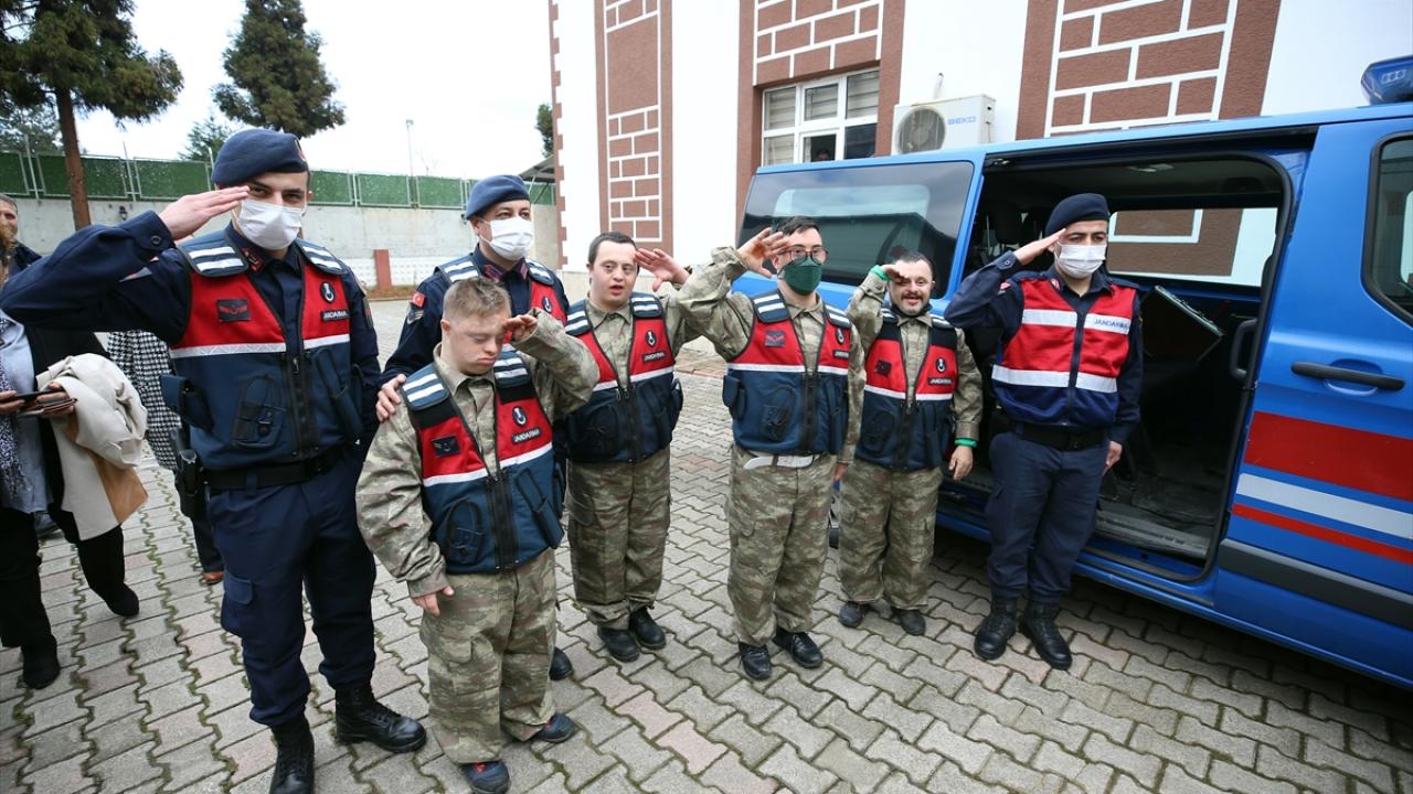 Daha sonra İlçe Jandarma Komutanı Kıdemli Başçavuş Hasan Zeki Uzunöz`ün makamında ağırladığı ve ikramlarda bulunduğu down sendromlular, komutanlıktaki bazı birimleri gezdi. Askerler tarafından jandarma yeleği giydirilen down sendromlular, resmi araçlara binerek ilçede asayiş turu attı.