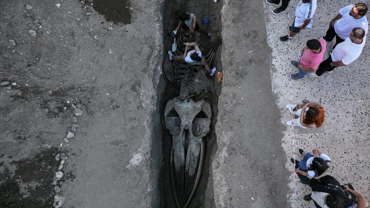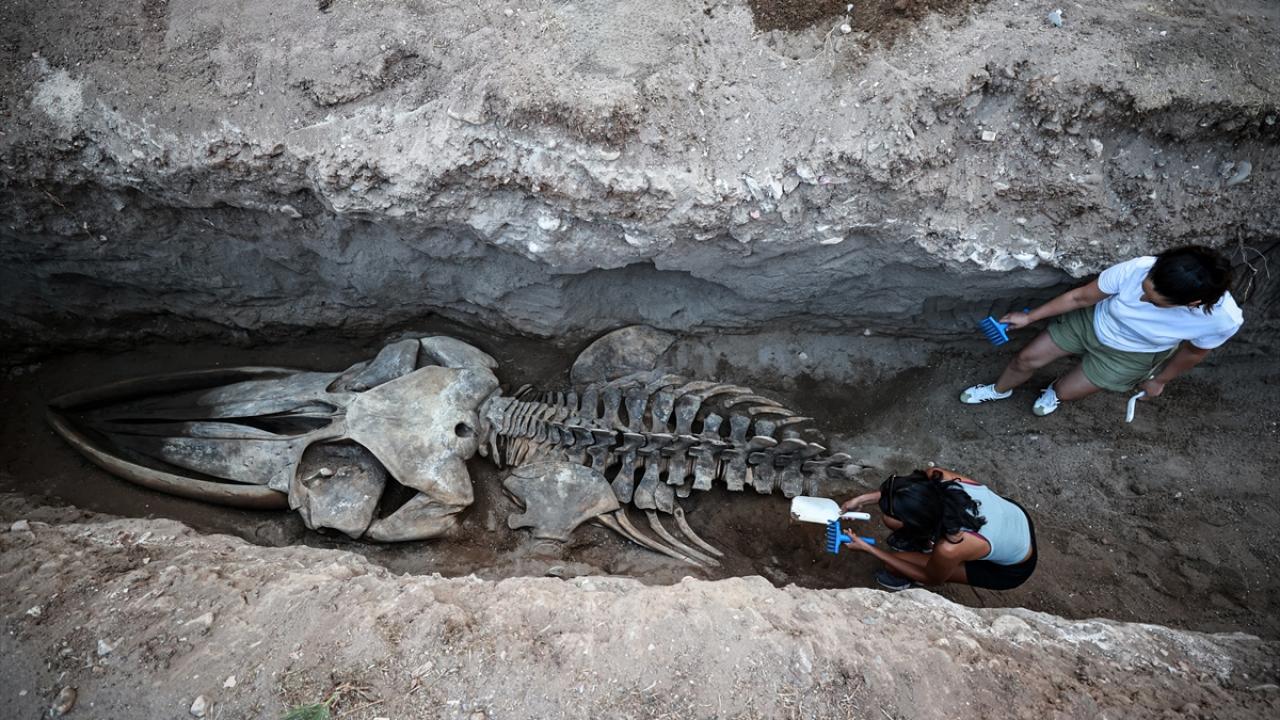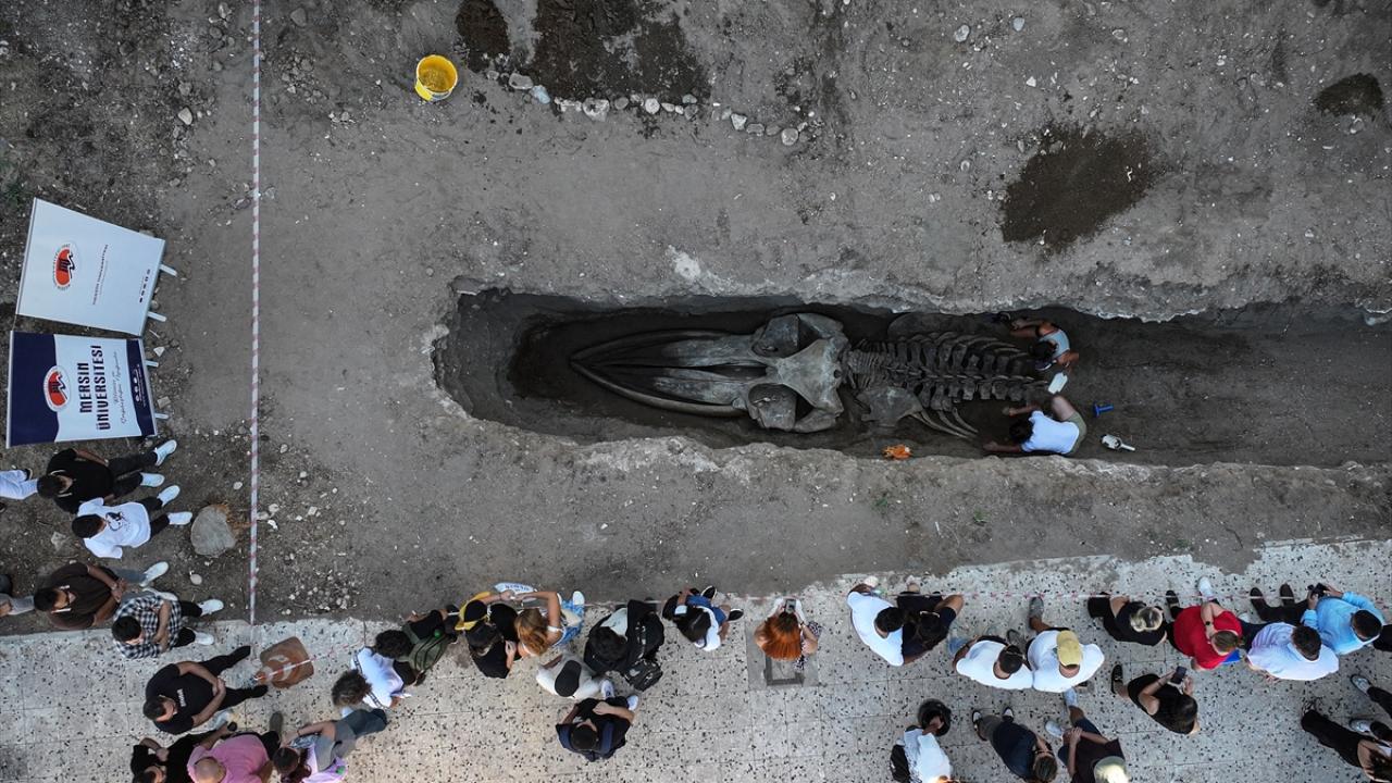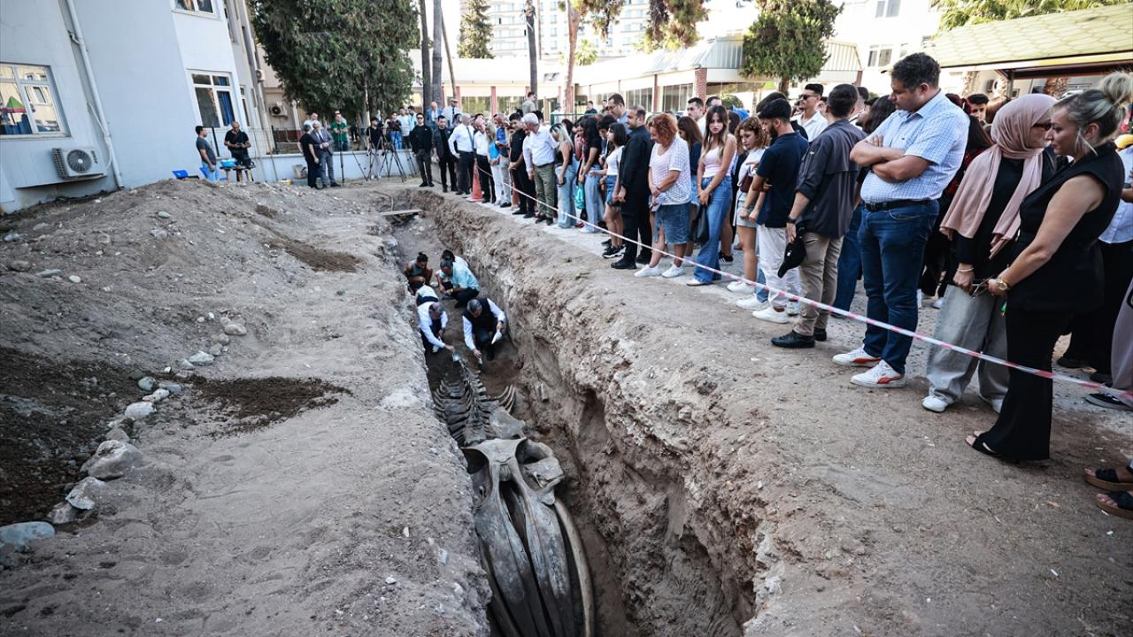Mersin'de 2021'de sahile vurduktan sonra Mersin Üniversitesi Yenişehir Kampüsü'nün bahçesine gömülen 14 metrelik Fin balinası iskeletinin bilimsel çalışmalarda kullanılmak üzere topraktan çıkarılma işlemi sürüyor.