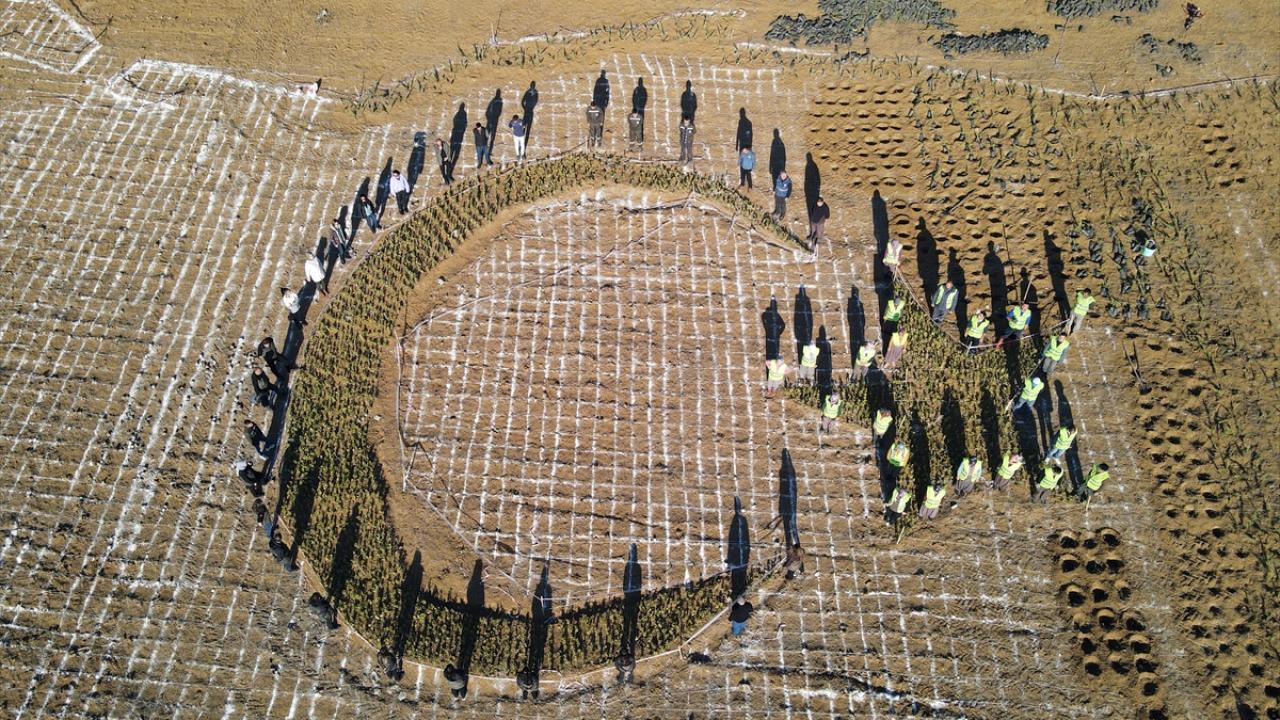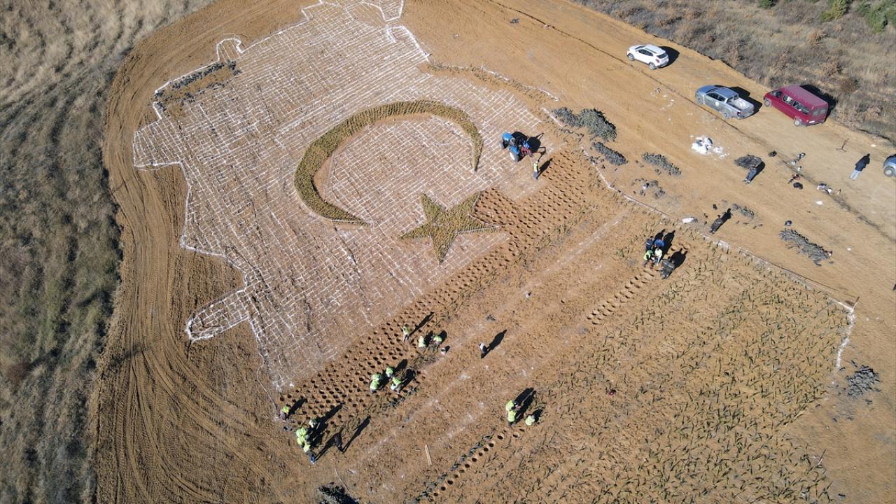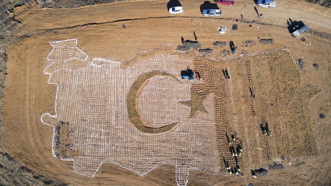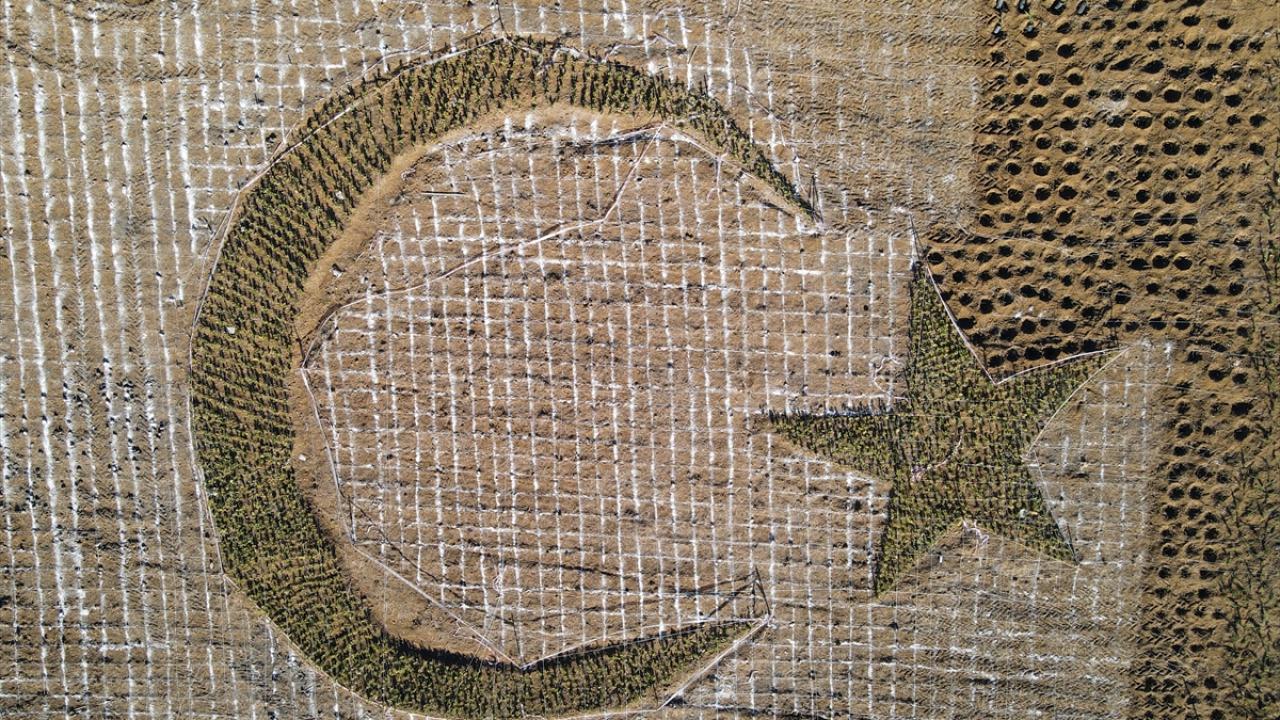 Üniversite kampüsünde belirlenen alana fidanlar Orman Bölge Müdürlüğü personelince, Türkiye haritası, içine de ay ve yıldız şeklinde dikiliyor. Fidan dikiminde görev alan personel, ay ve yıldızın çevresinde dizilerek fotoğraf da çektirdi.