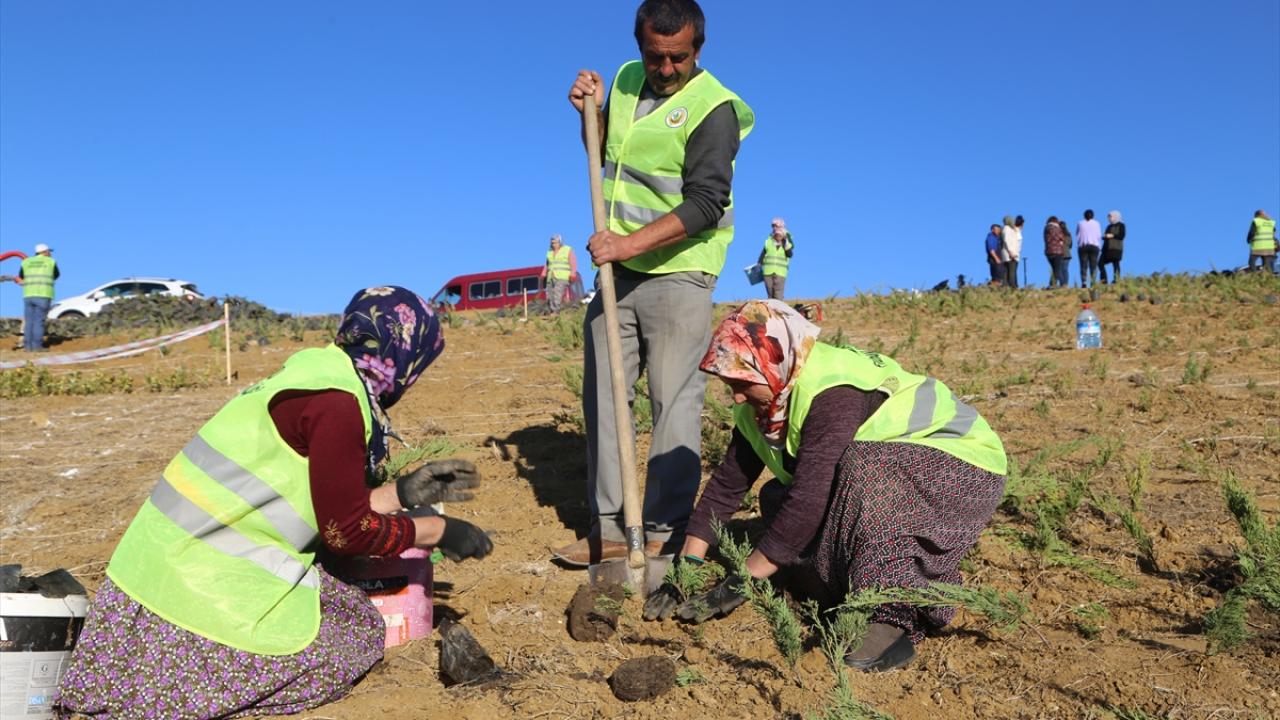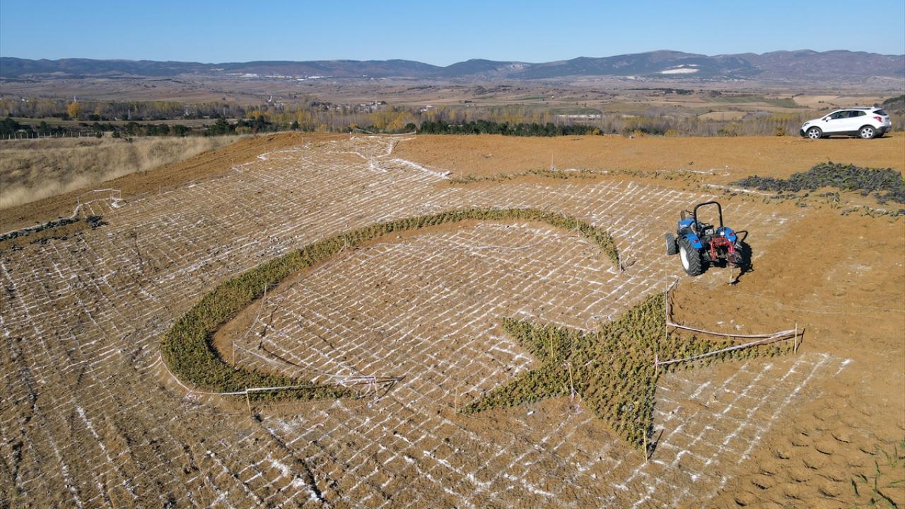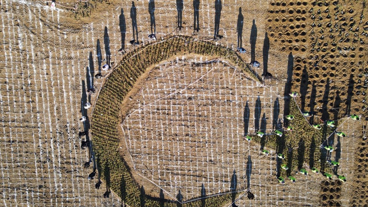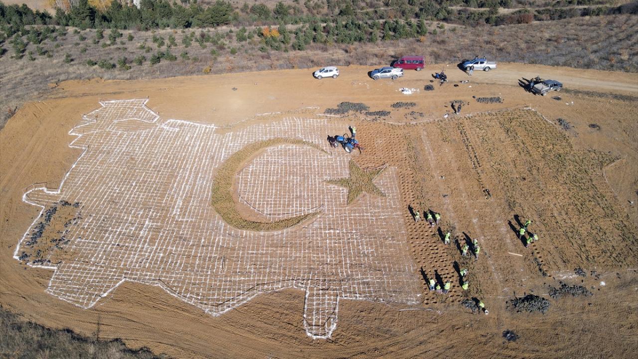 Üniversite kampüsünde belirlenen alana fidanlar Orman Bölge Müdürlüğü personelince, Türkiye haritası, içine de ay ve yıldız şeklinde dikiliyor. Fidan dikiminde görev alan personel, ay ve yıldızın çevresinde dizilerek fotoğraf da çektirdi.