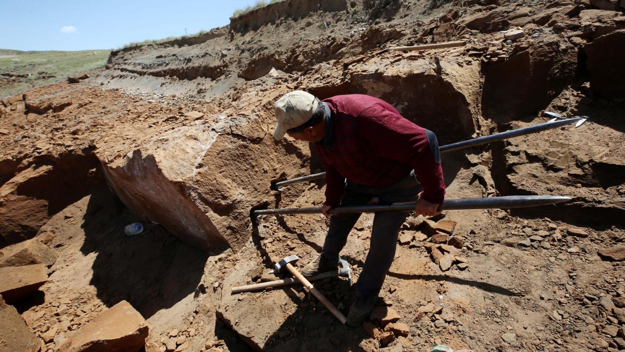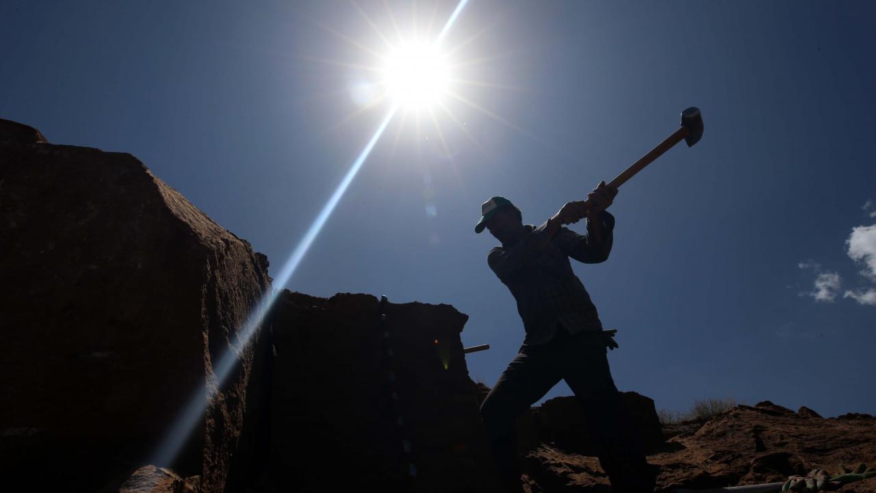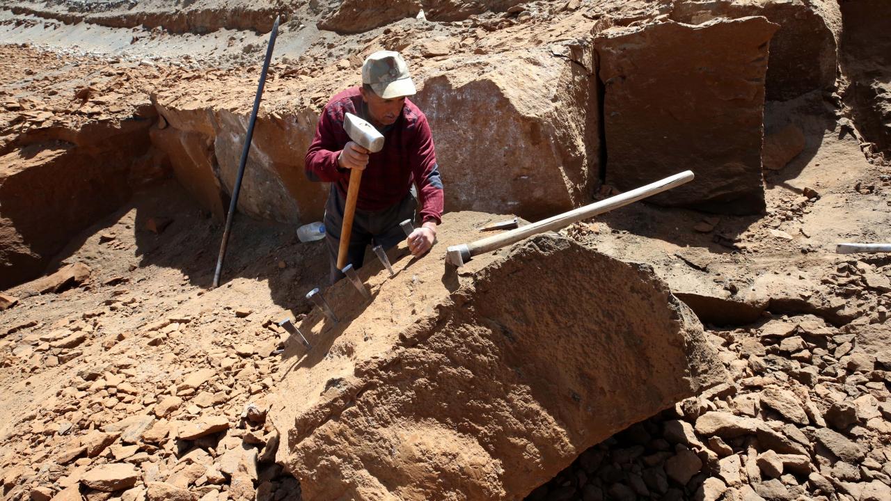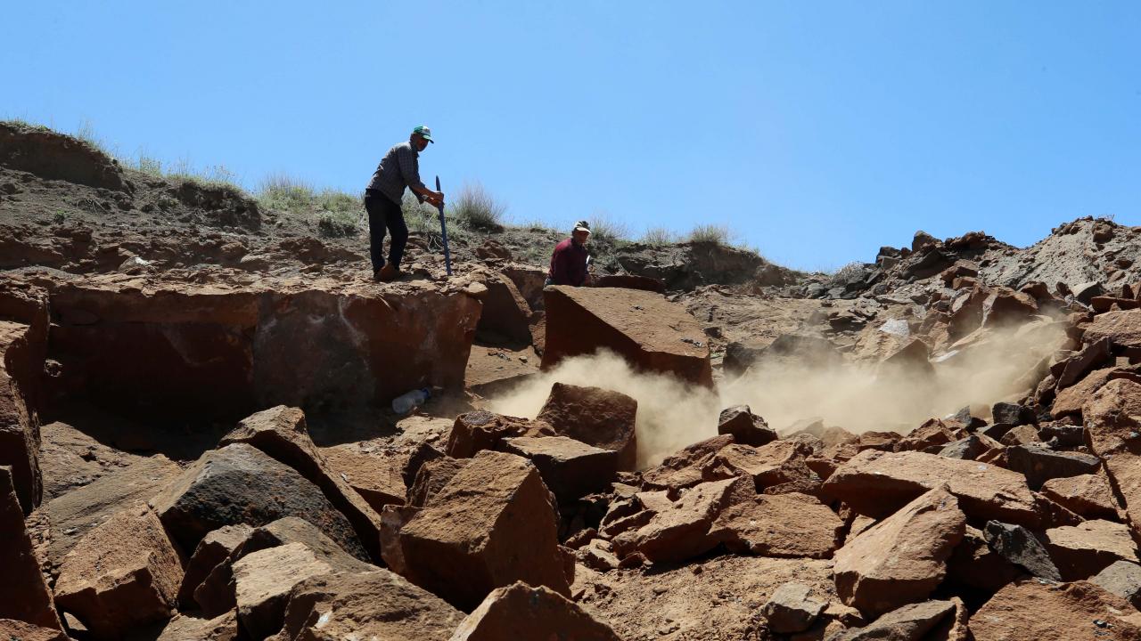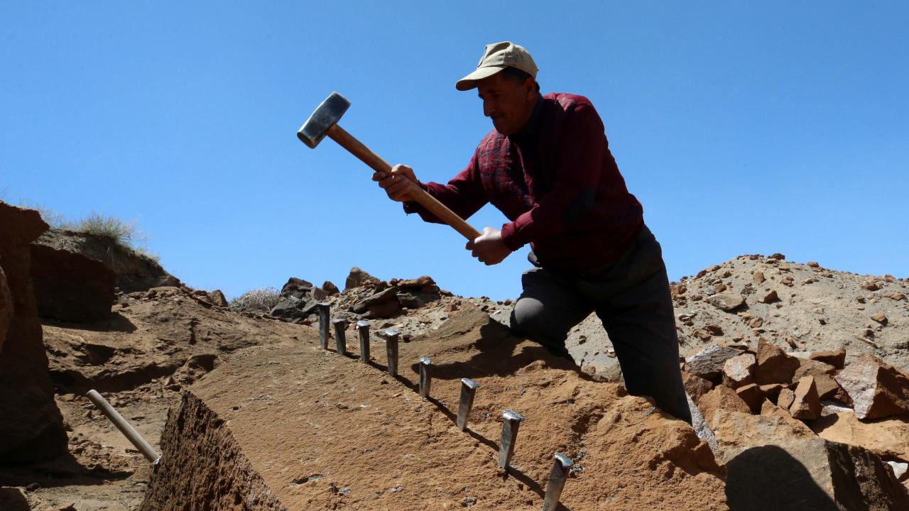 Bitlis'in Ahlat ilçesinde taş ocağında çalışan 60 yaşındaki Recep Gürgüz, 40 yıldır elinden düşürmediği balyozuyla kaya bloklarını parçalıyor. Gürgüz, manivela, kazma, çivi ve 4 kilogramlık balyoz kullanarak geleneksel yöntemlerle taş kırıyor.