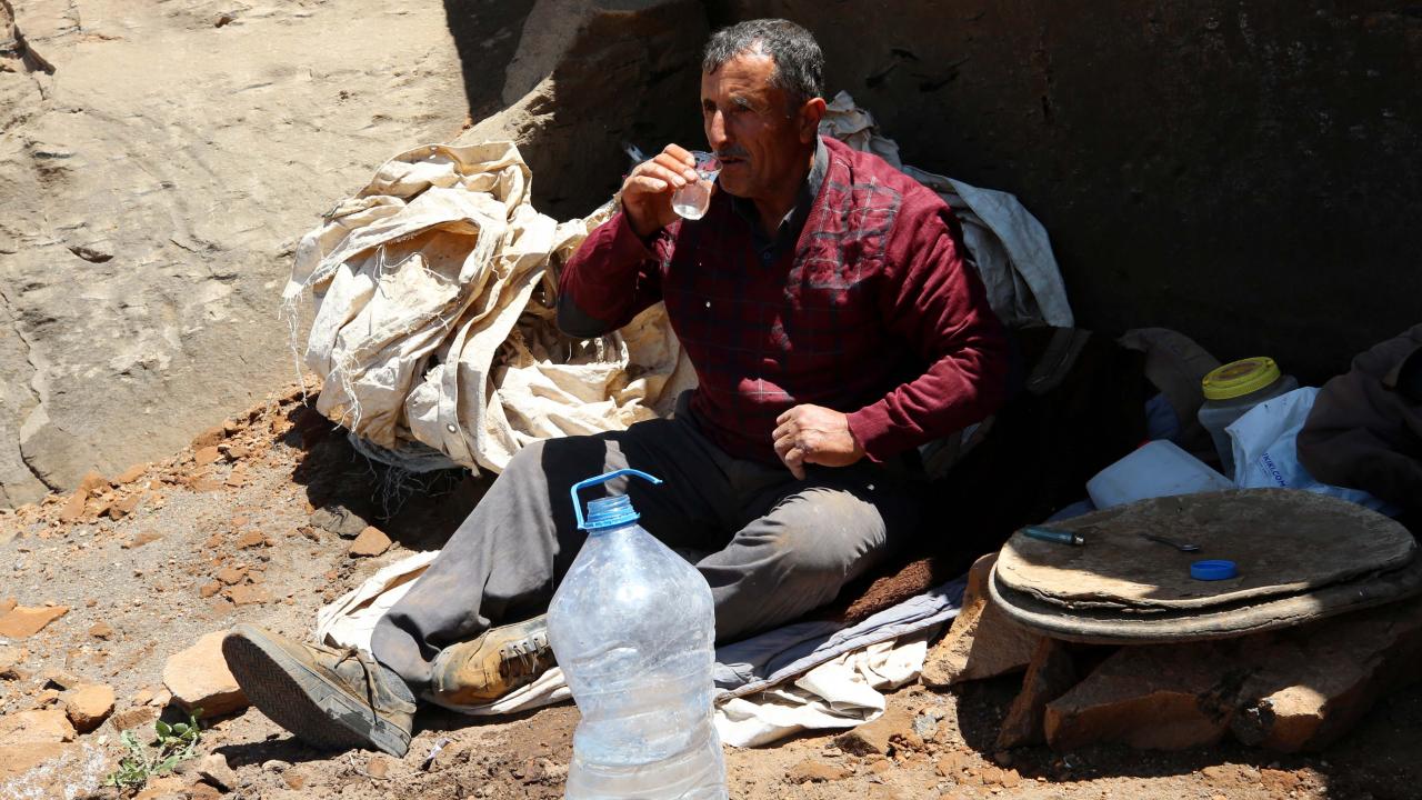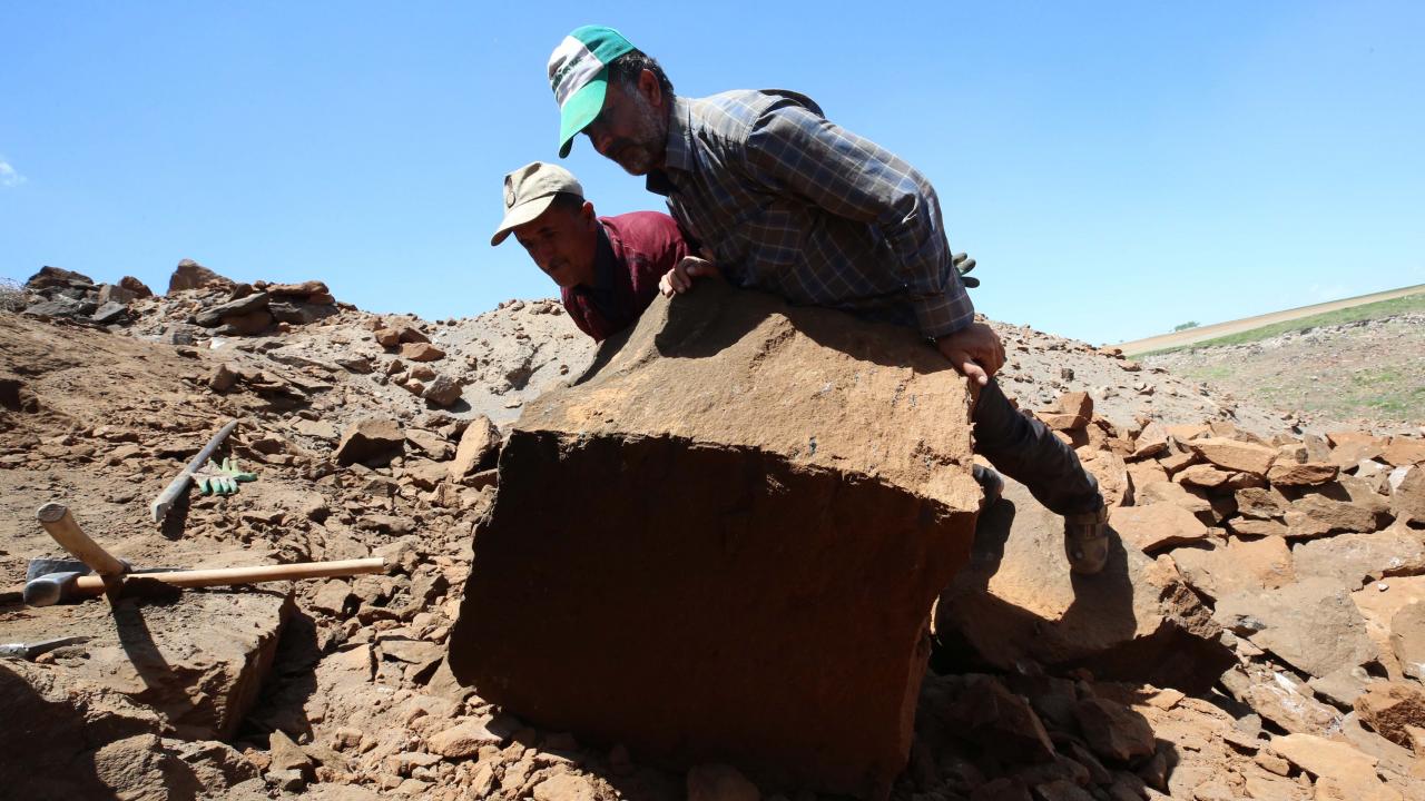 Taş çıkarırken kullandığı manivelanın 25, balyozun da 4 kilogram olduğunu anlatan Gürgüz, "Ağır bir iş. Hiçbir makine ve teknolojik ekipman kullanmadan bilek gücüyle taşları çıkarıyoruz. Akşama kadar kavurucu sıcaklığın altında balyoz sallıyoruz. Ailemizin rızkı için bunu yapıyoruz. Taşlar, yazın serin kışın ise sıcak tutma özelliğine sahip" diye konuştu.