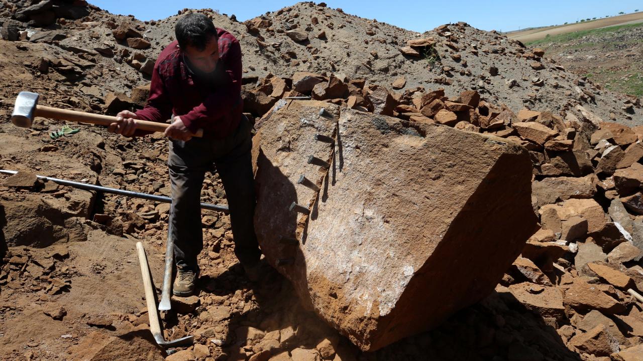 İlçede 60 yıl taş ustalığı yapan babasının elinden tutarak işe başlattığı Gürgüz, uzun uğraşlar sonucu çıkardığı büyük kaya bloklarını, balyoz ve çivilerle kullanılabilir hale getiriyor.