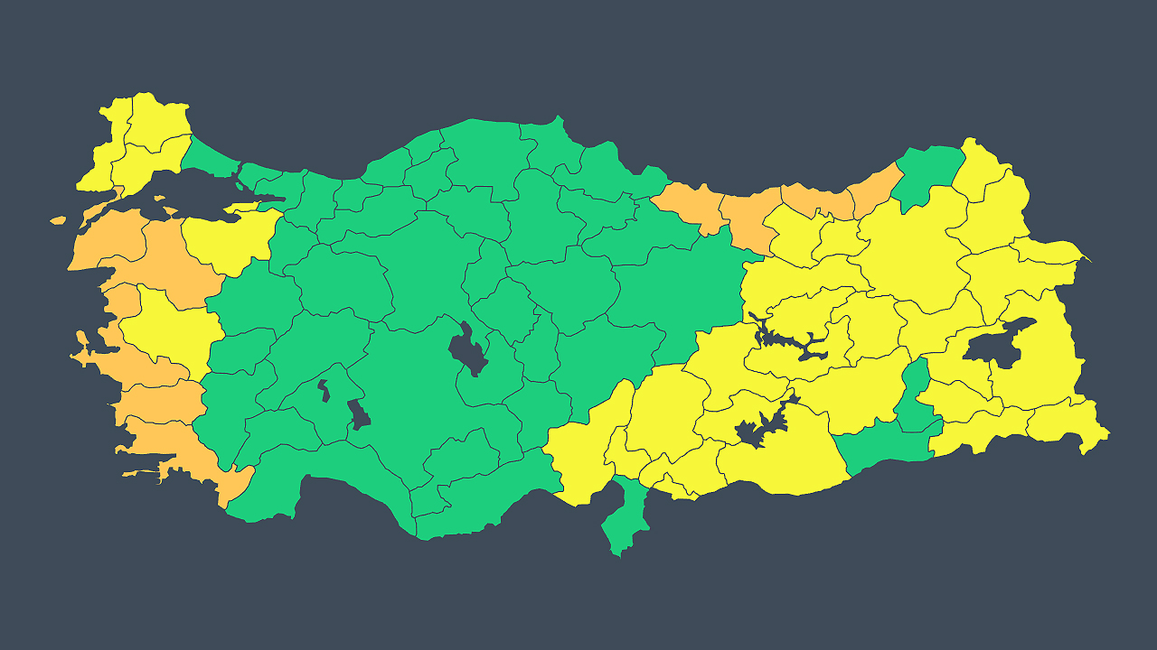 Meteoroloji 9 il için turuncu, 32 il için sarı kodlu uyarı yaptı. Yağış, fırtına ve toz taşınımı bekleniyor.