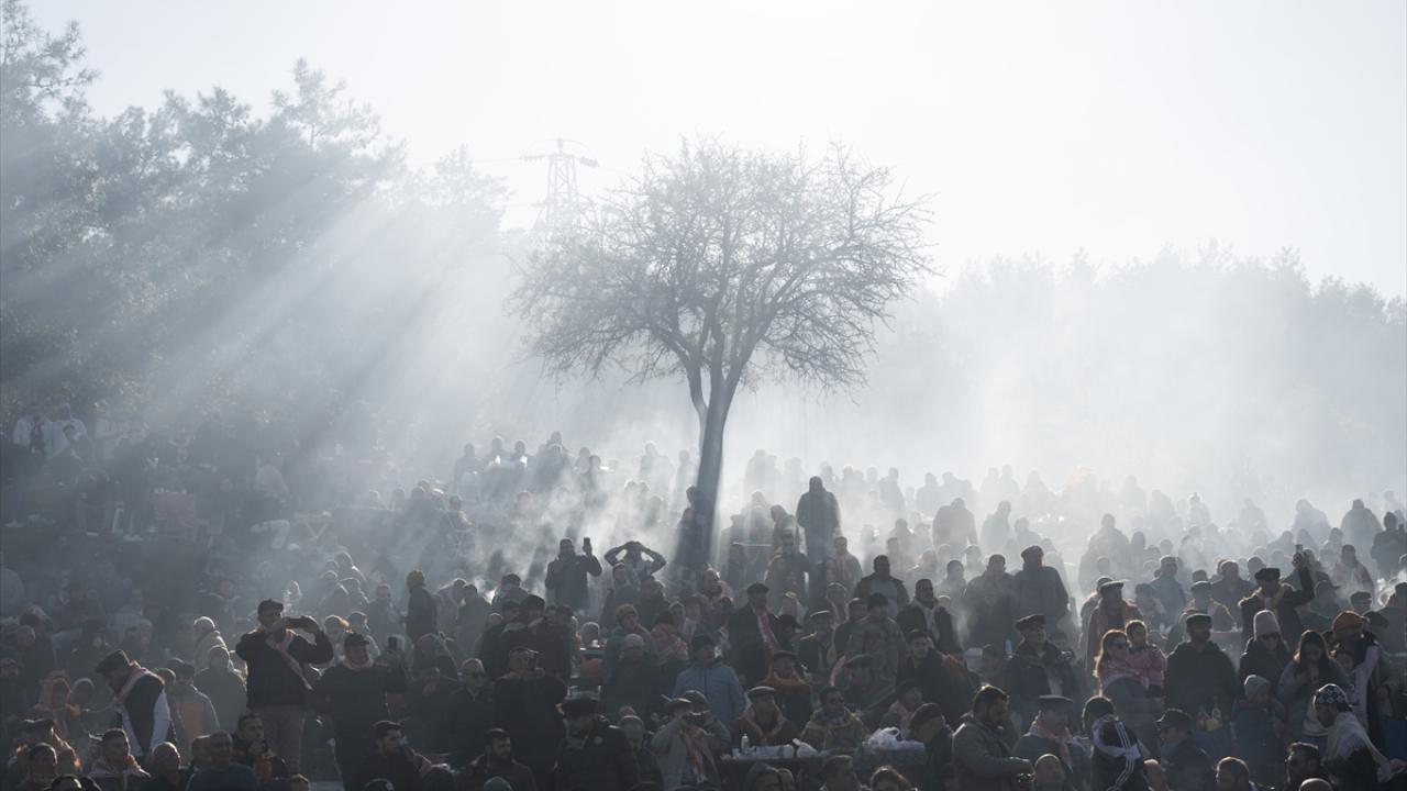 Alanı çevreleyen yamaçlar, soğuk havaya rağmen erken saatlerden itibaren deve güreşi meraklılarınca dolduruldu.