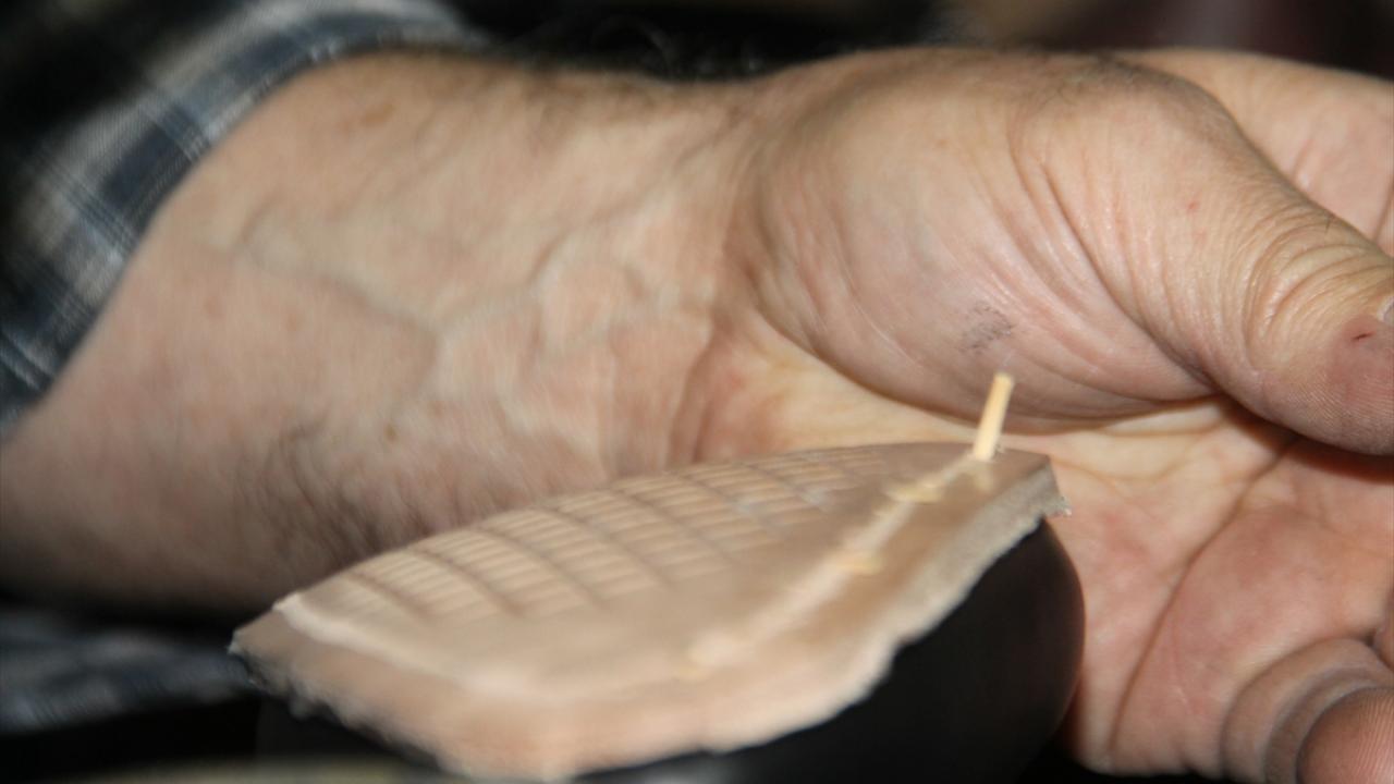 Eskiden rağbet gören tahta çivili ayakkabıların teknolojik gelişmeler nedeniyle artık pek yapılmadığını vurgulayan Özcan, kullandığı tahta çivileri de kendisinin ürettiğini anlattı.